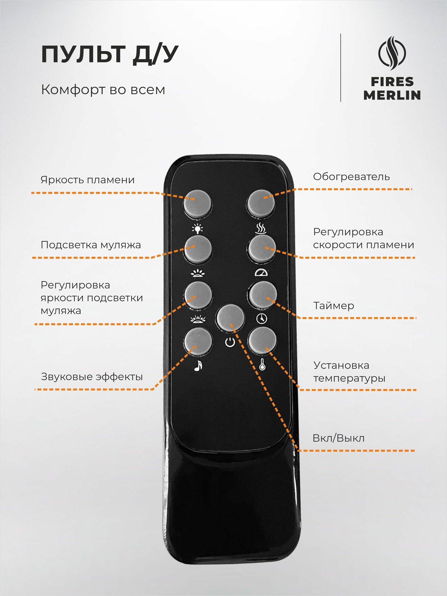 СохранитьКамин электрический Fires Merlin Stockholm 50 белый c очагом Topaz 50 напольный, имитация звука и пламени, пульт интересное: