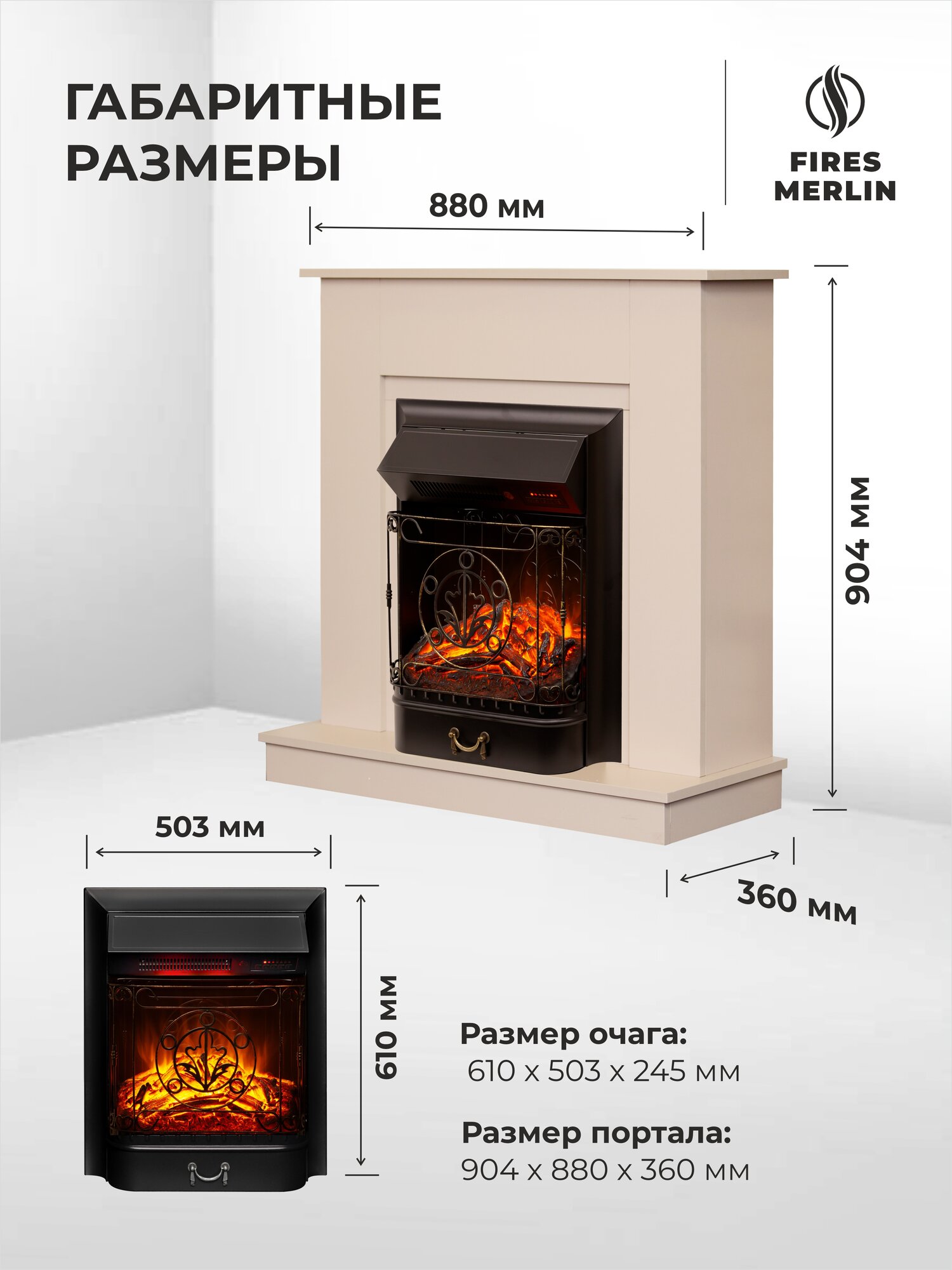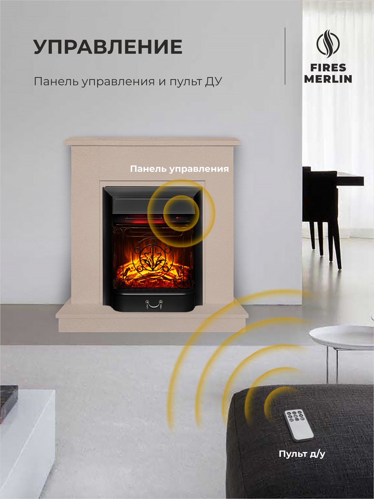 СохранитьКамин электрический Fires Merlin Nord BG бежевый с очагом, пульт ДУ, с обогревом, эффект живого пламени интересное: