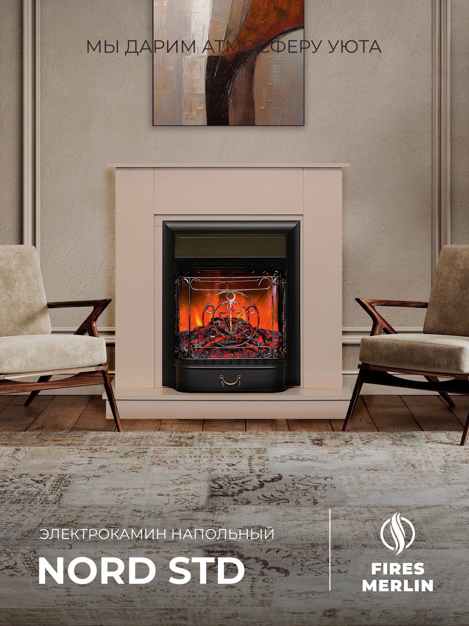 Камин электрический Fires Merlin Nord BG бежевый с очагом, пульт ДУ, с обогревом, напольный