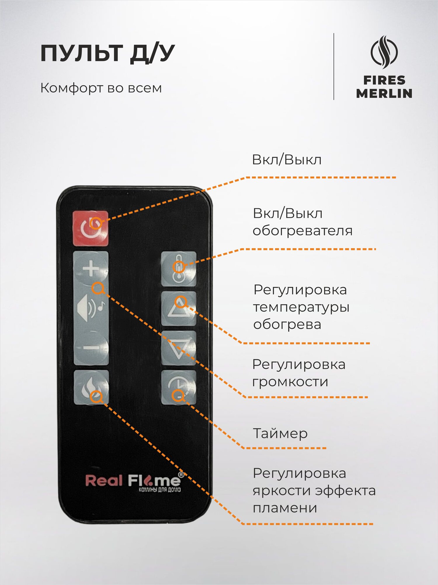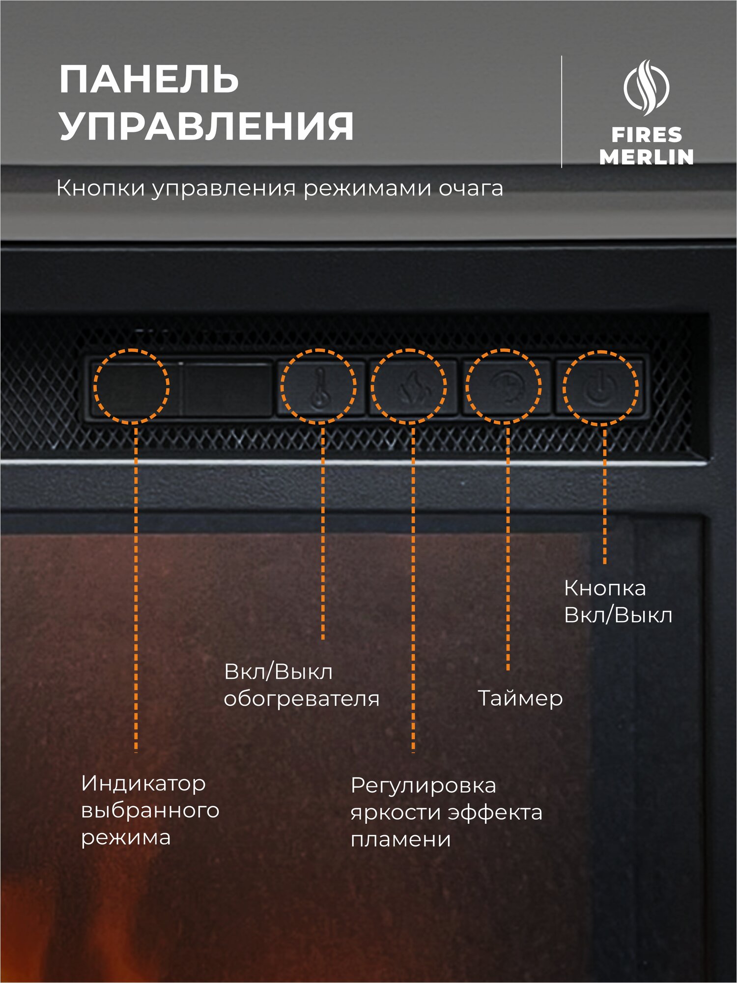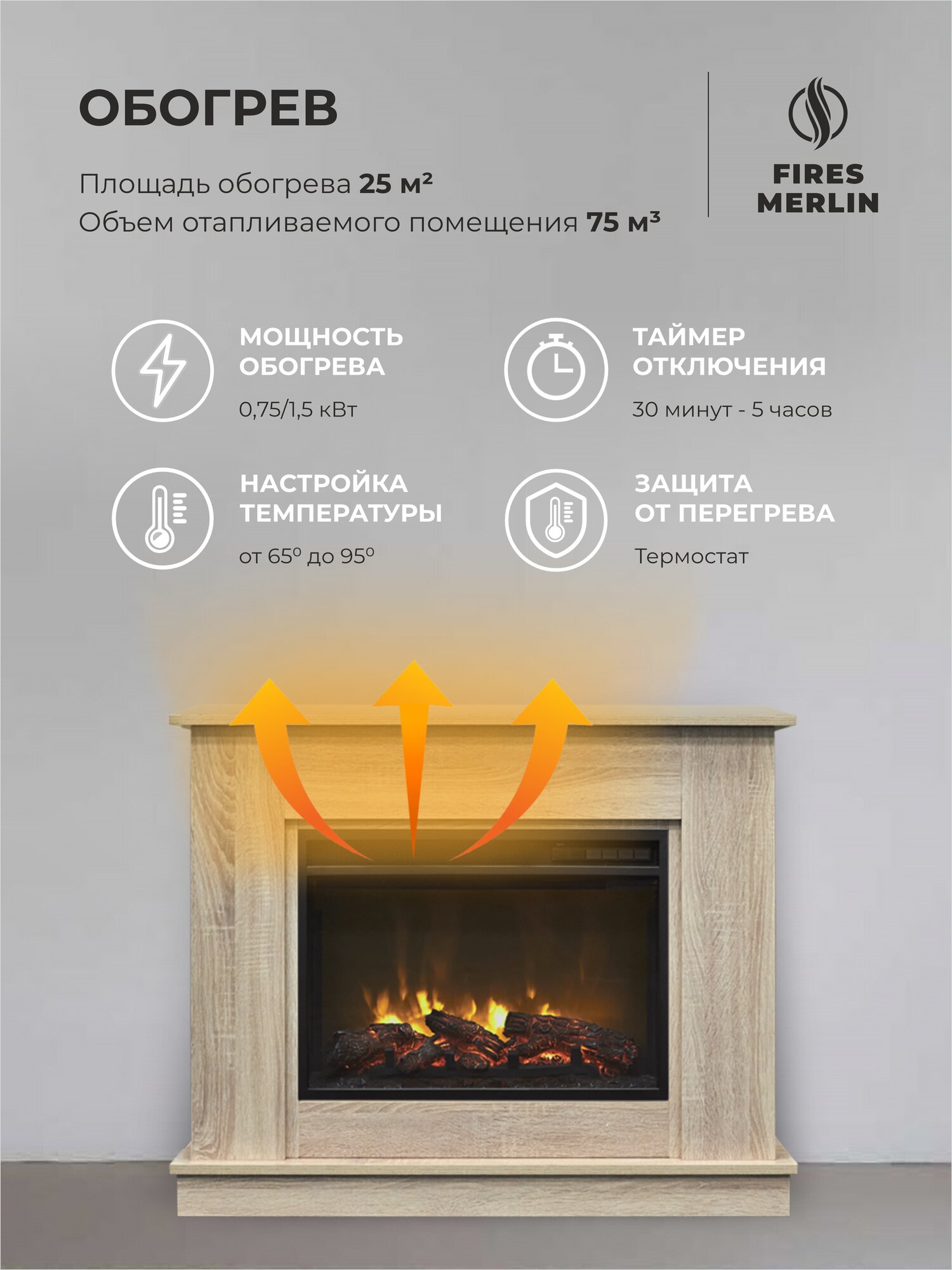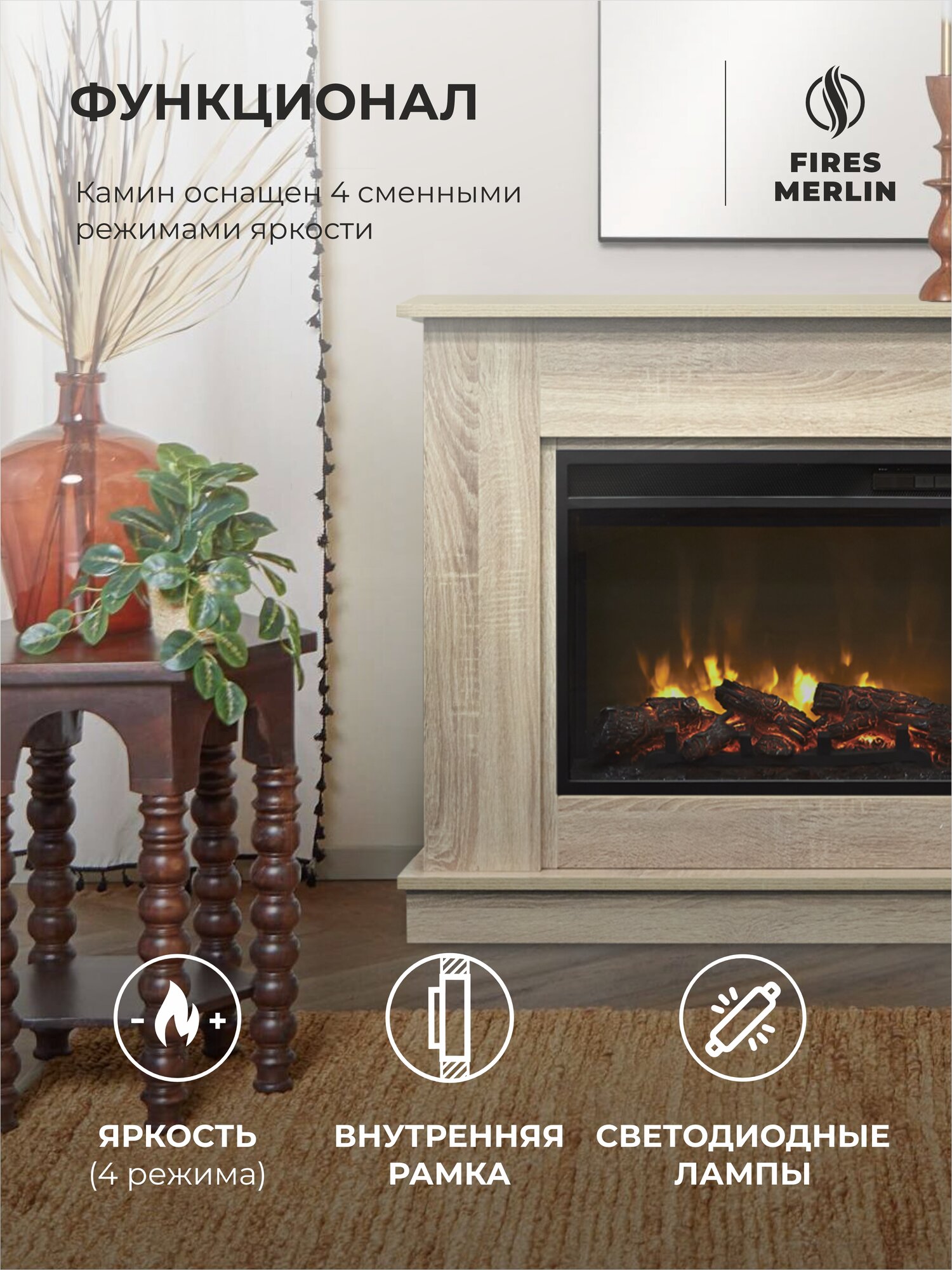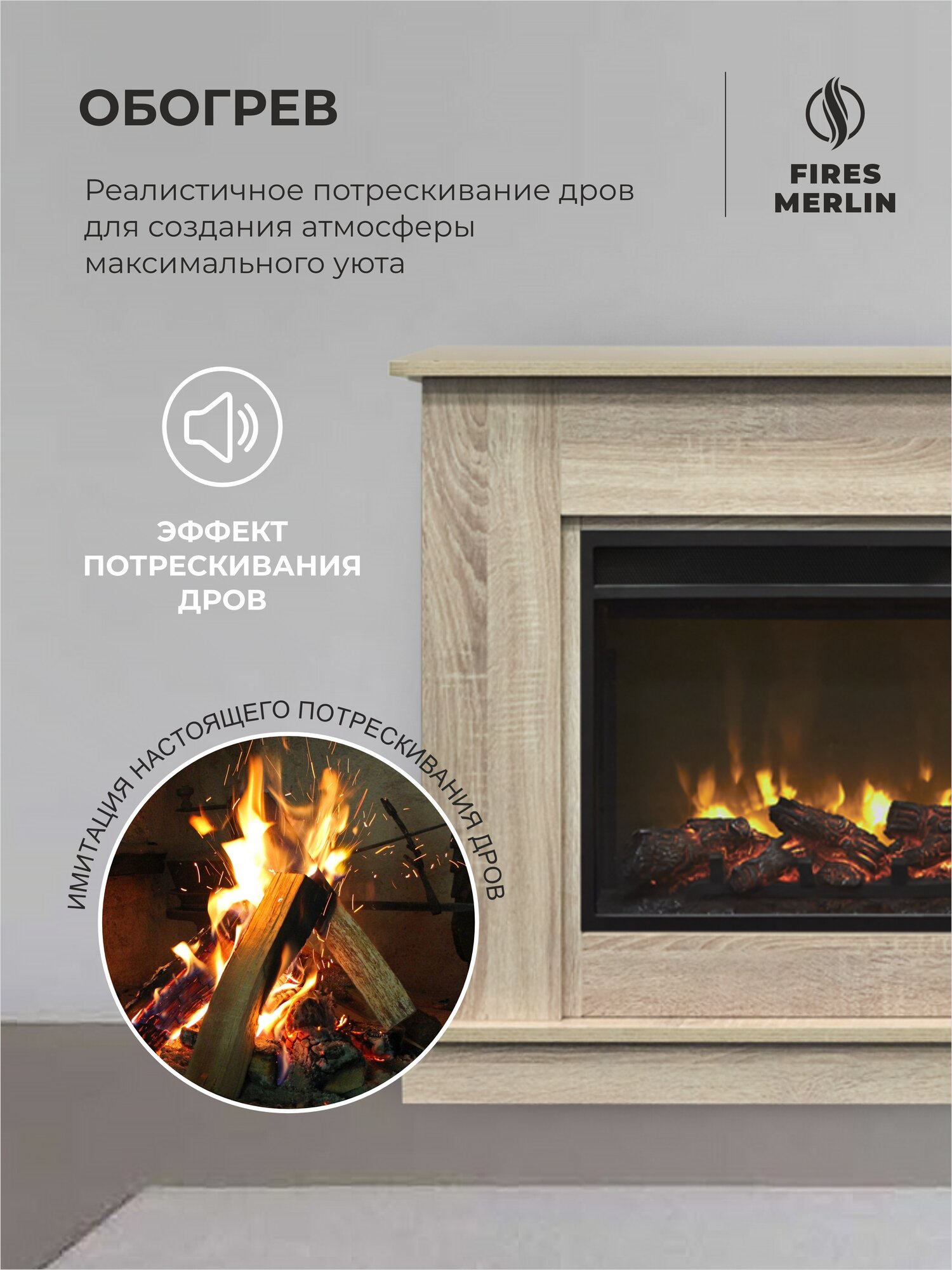 Купить Электрокамин Fires Merlin Lord дуб санома c очагом, звуковая имитация и пульт ДУ, современный стиль