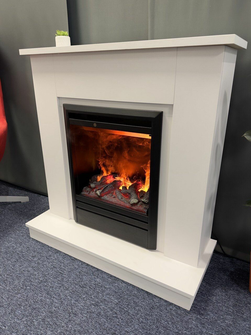 Камин электрический Fires Merlin Nord WT белый с очагом, пульт ДУ, с обогревом, эффект живого пламени