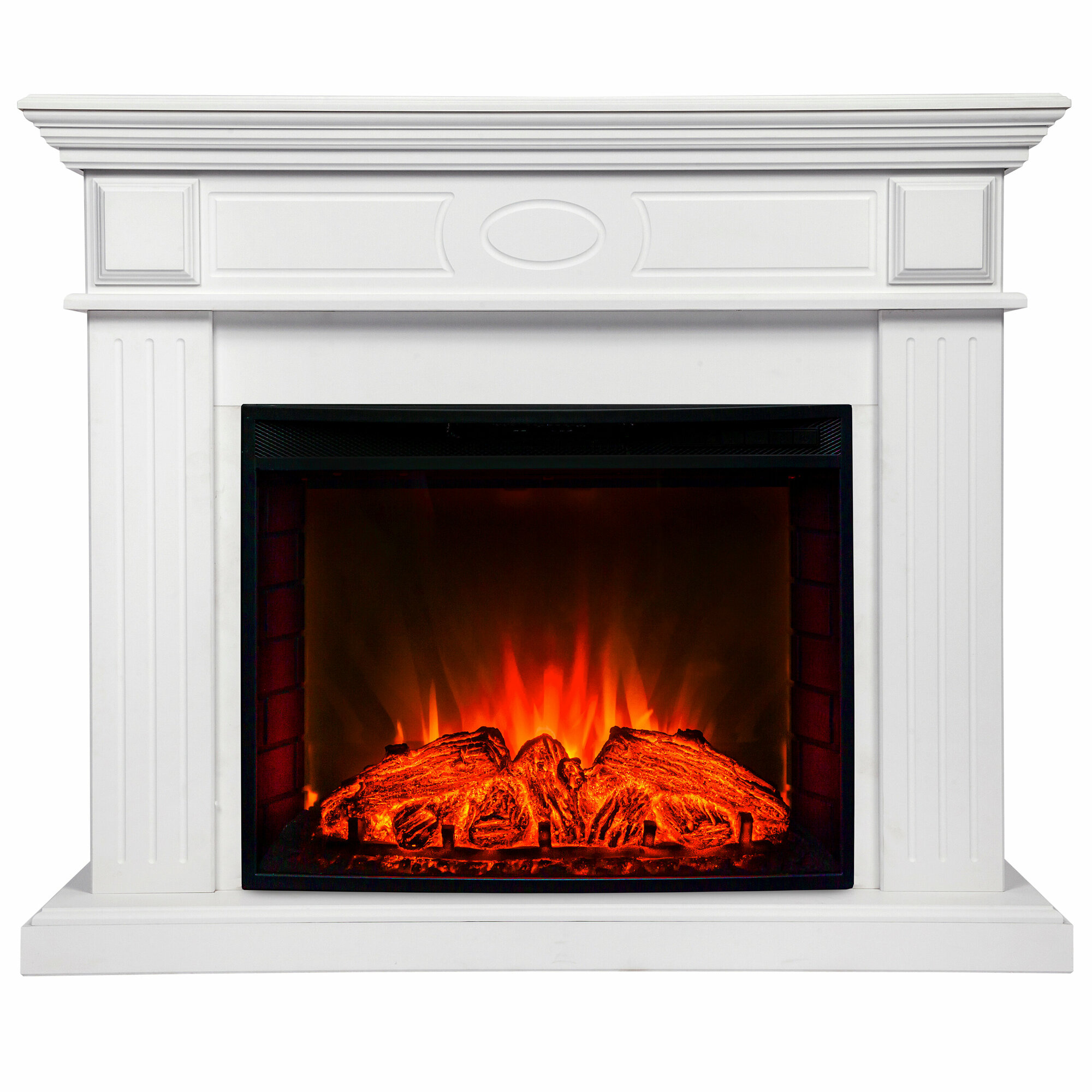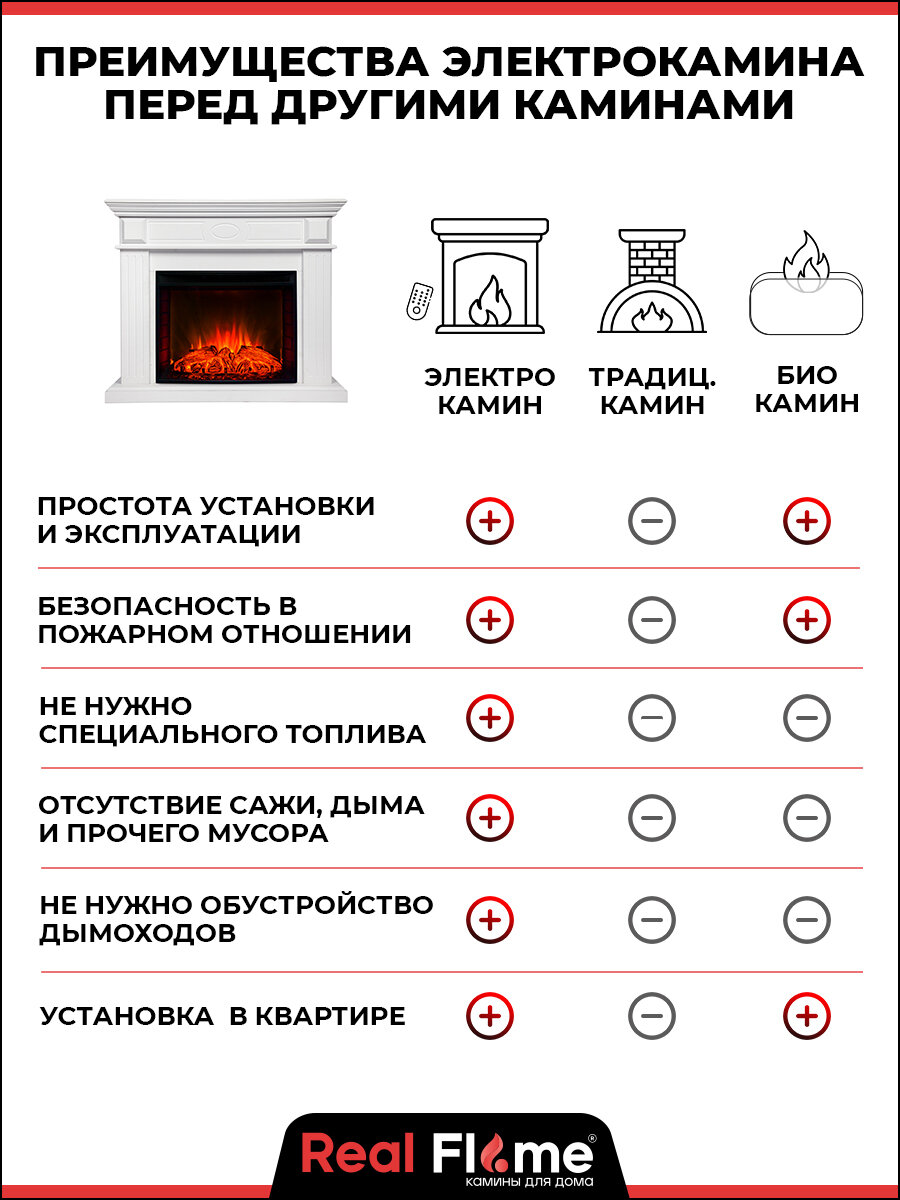 Электрокамин RealFlame Nord белый МДФ с очагом EVRIKA, напольный камин с обогревом, пульт ДУ