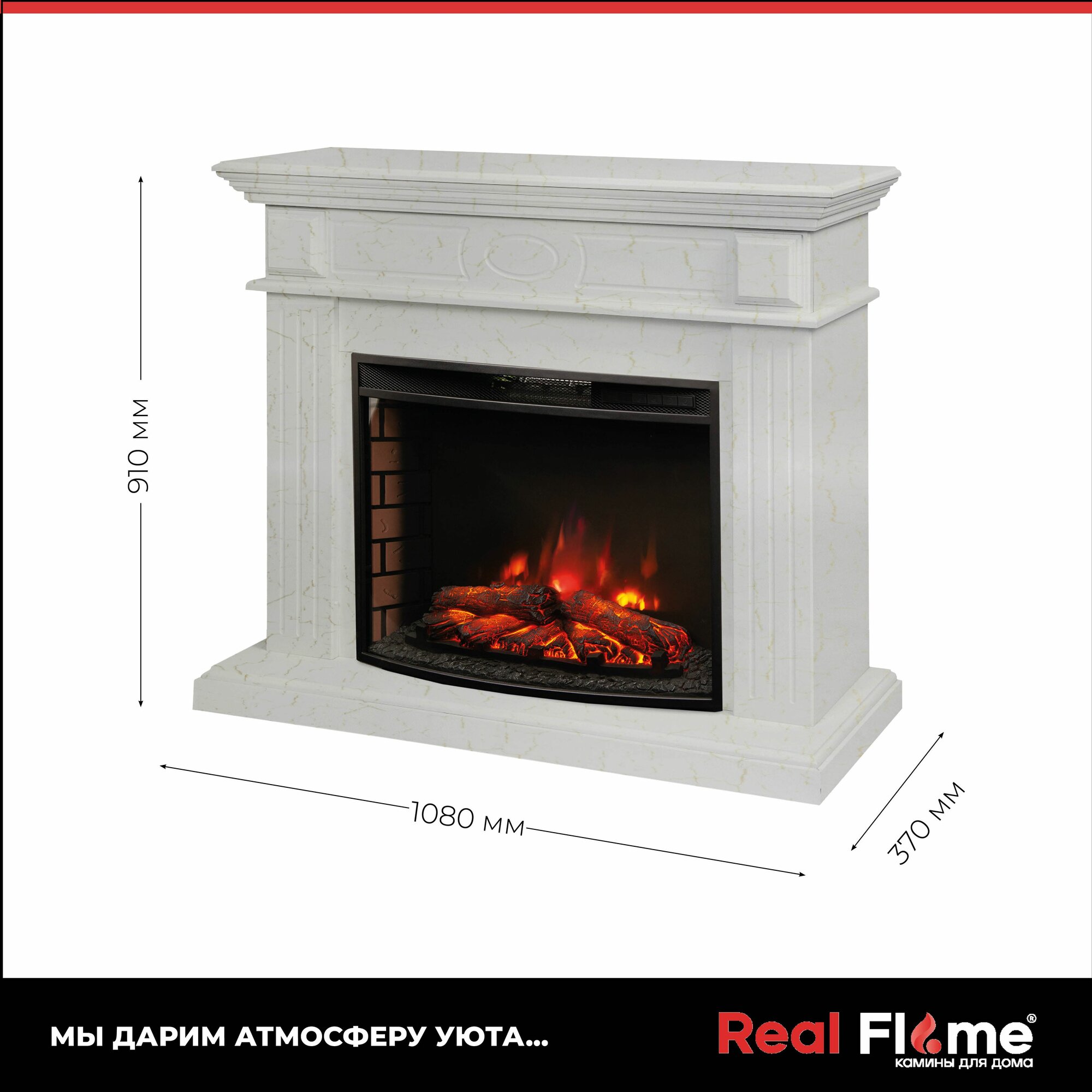 Электрокамин RealFlame Nord белый МДФ с очагом Firestar 25'5 3D, напольный камин с обогревом, пульт ДУ