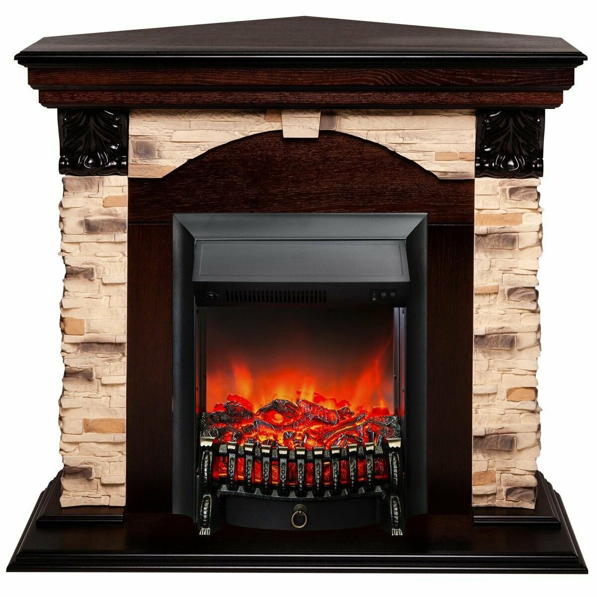 Купить Электрокамин RealFlame Dublin Corner Rock коричневый МДФ с очагом Fobos, звук потрескивания дров, обогрев