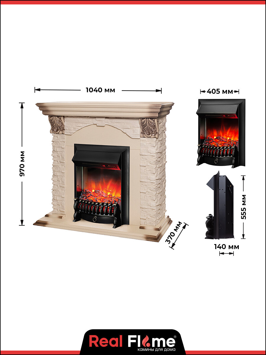 Электрокамин RealFlame Dublin Rock коричневый МДФ с очагом Fobos, звук потрескивания дров, обогрев, имитация пламени