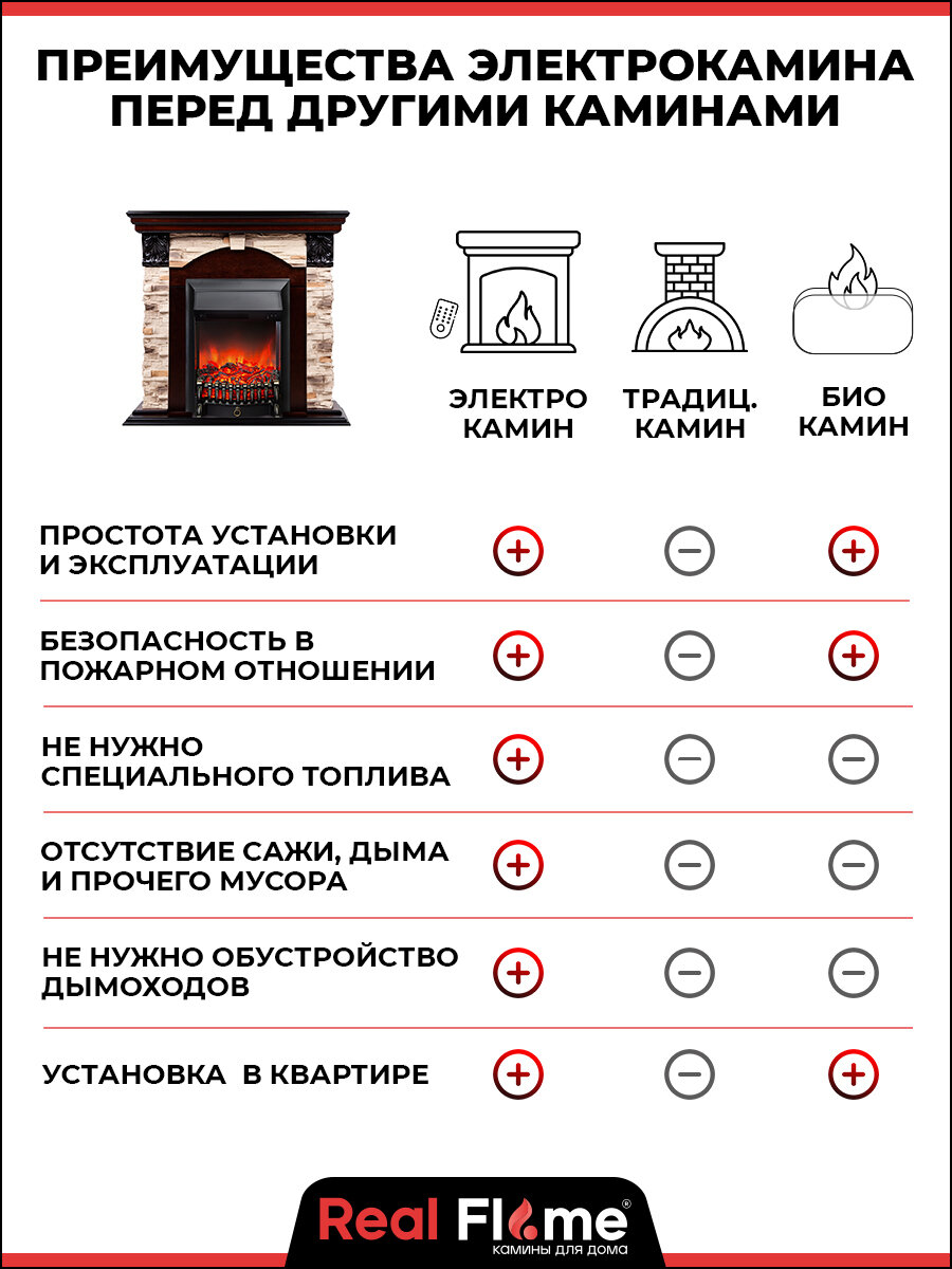 Электрокамин RealFlame Dublin Rock коричневый МДФ с очагом Fobos, звук потрескивания дров, обогрев, имитация пламени интересное: