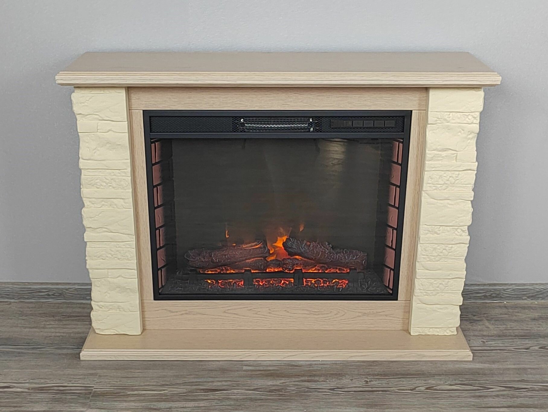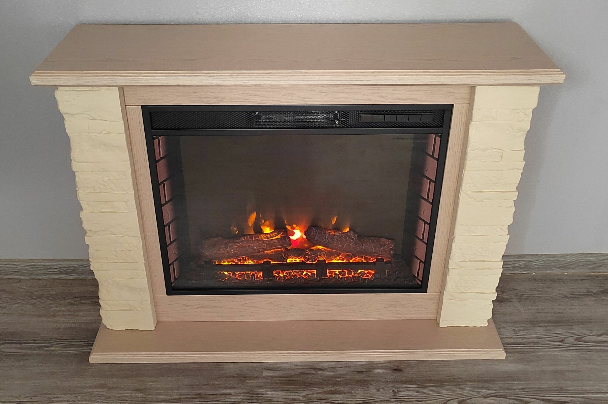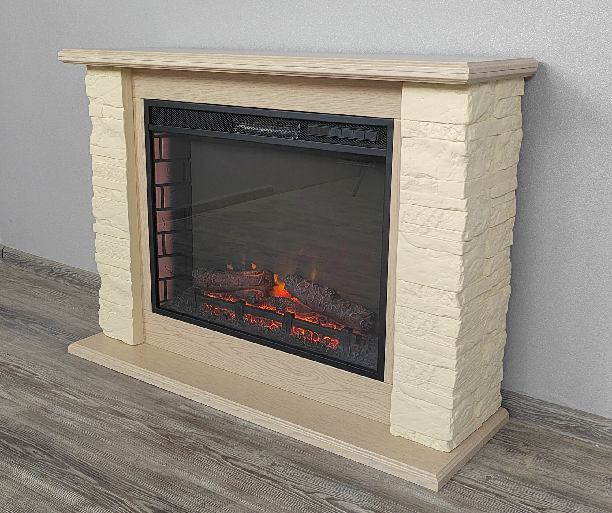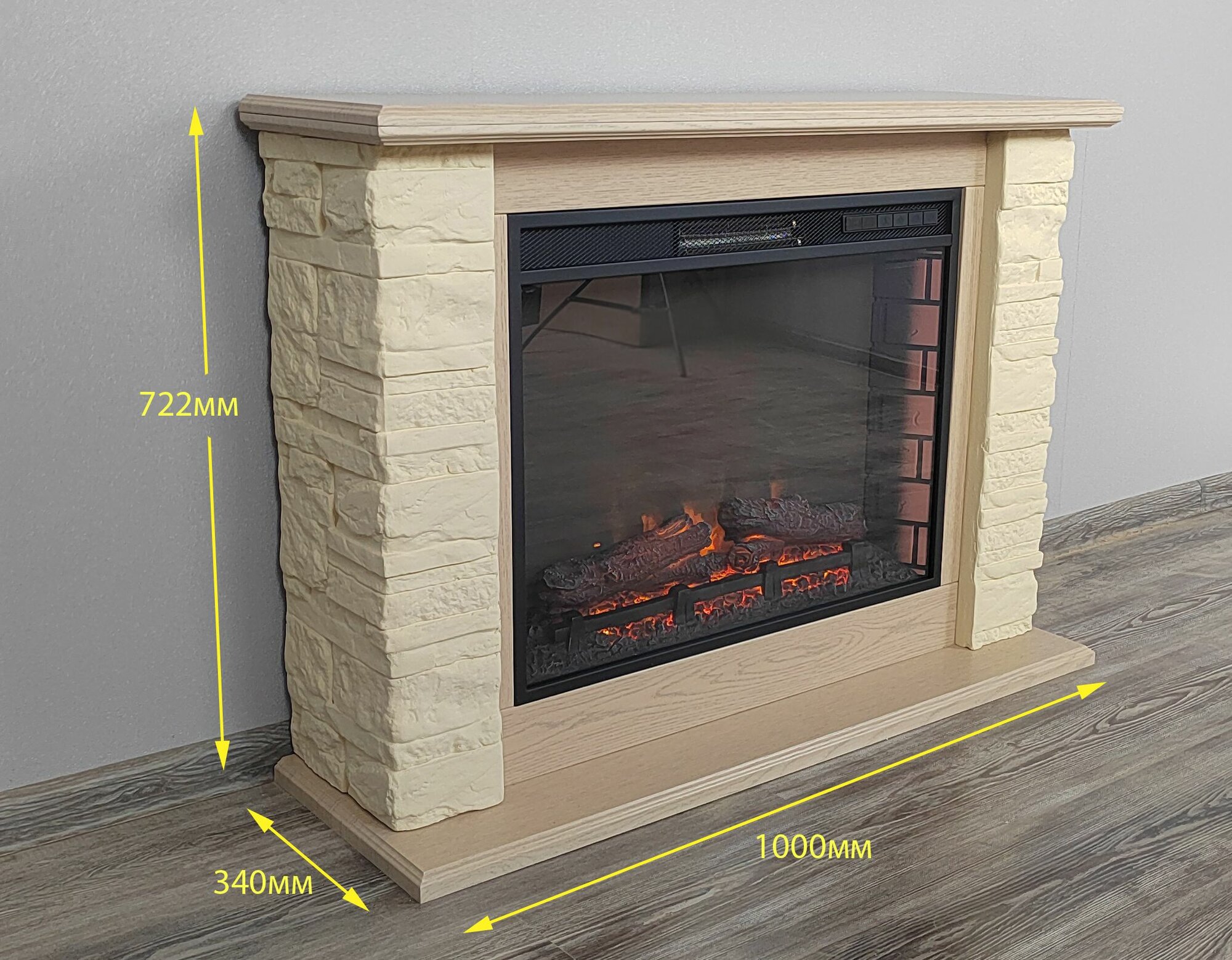 Купить Электрокамин Мальта с очагом Sparta 25 Дуб беленый, камень светло-бежевый