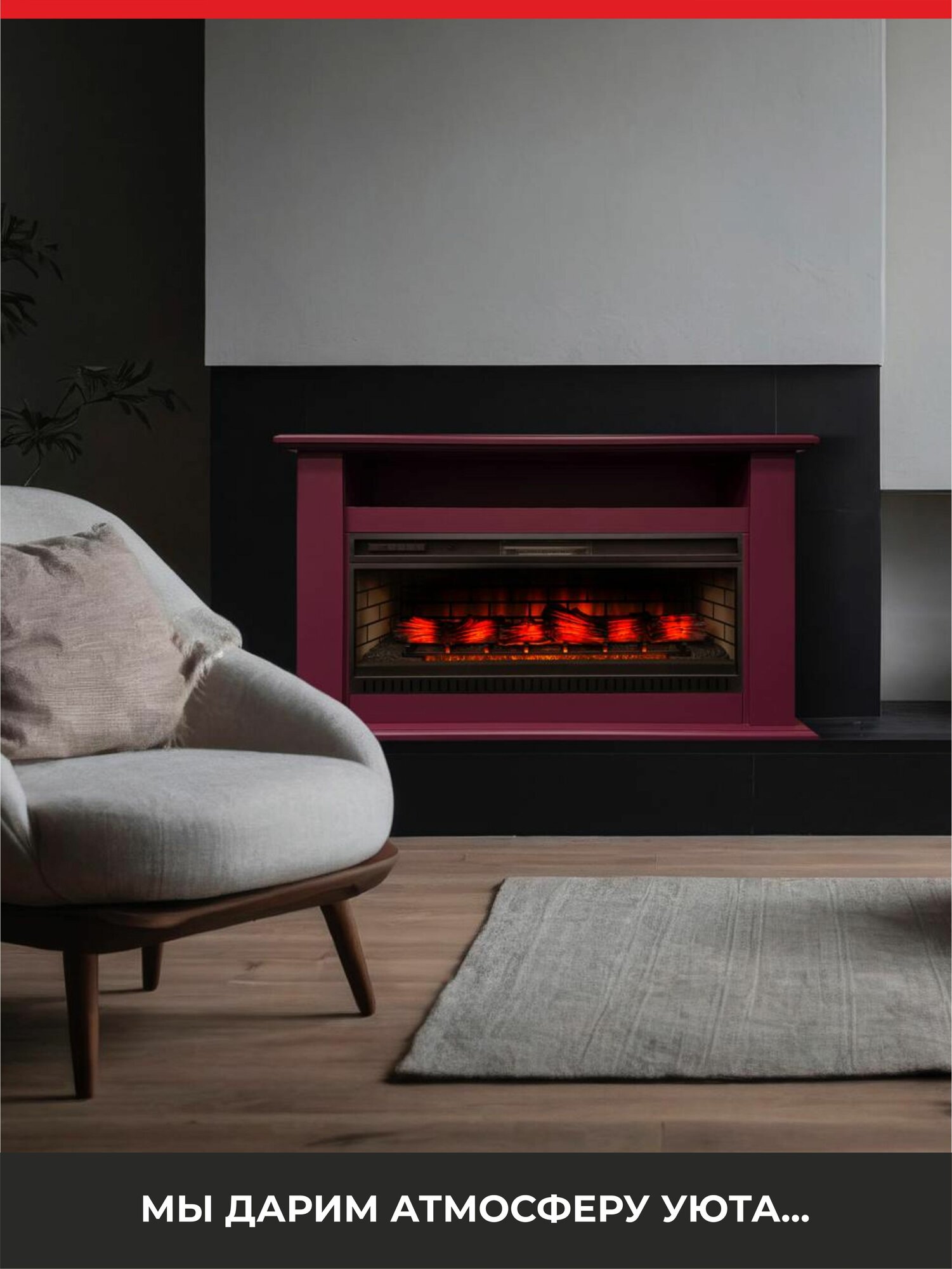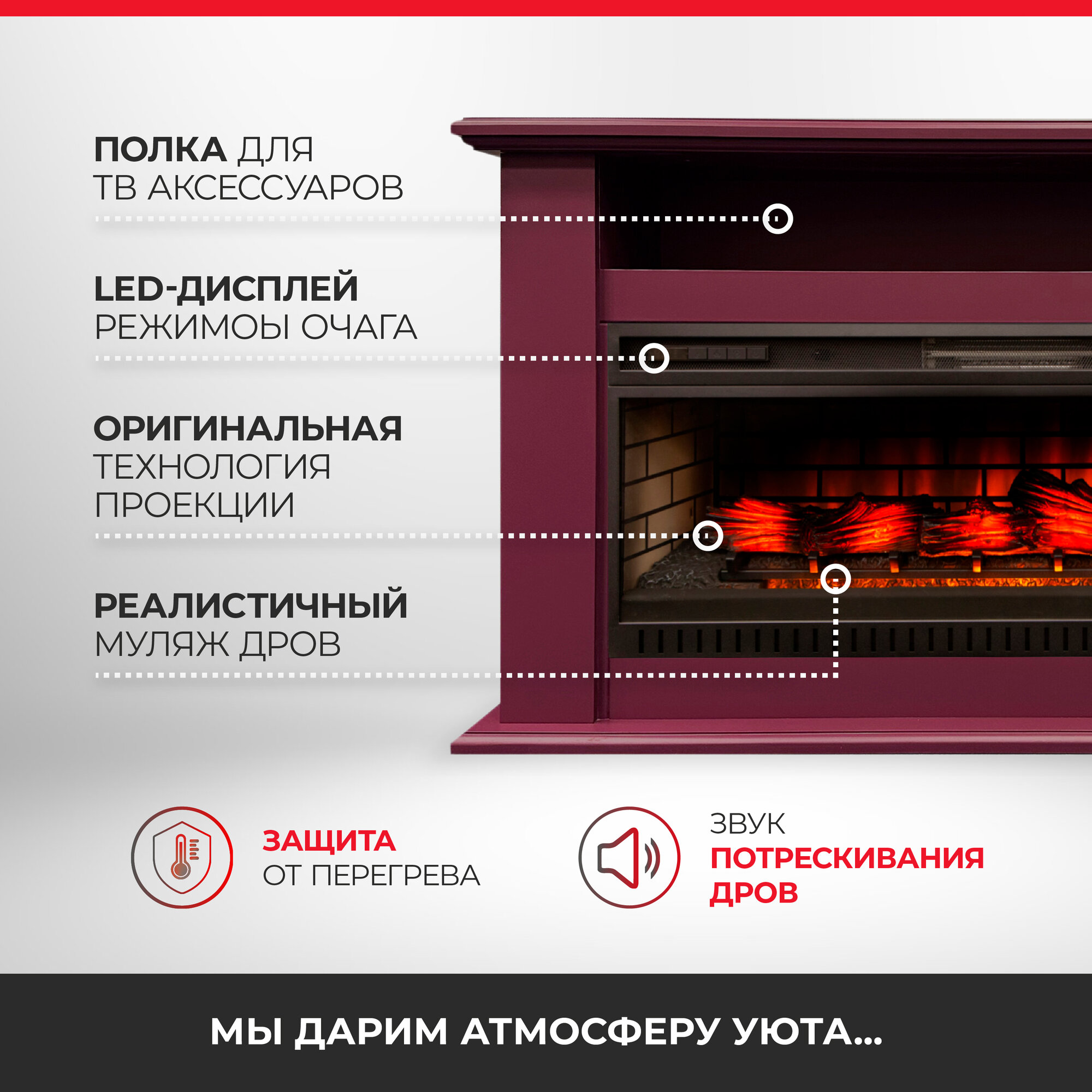 Электрокамин Bianco 45 бордо с очагом Jack 45, напольный камин с обогревом, материал МДФ интересное: