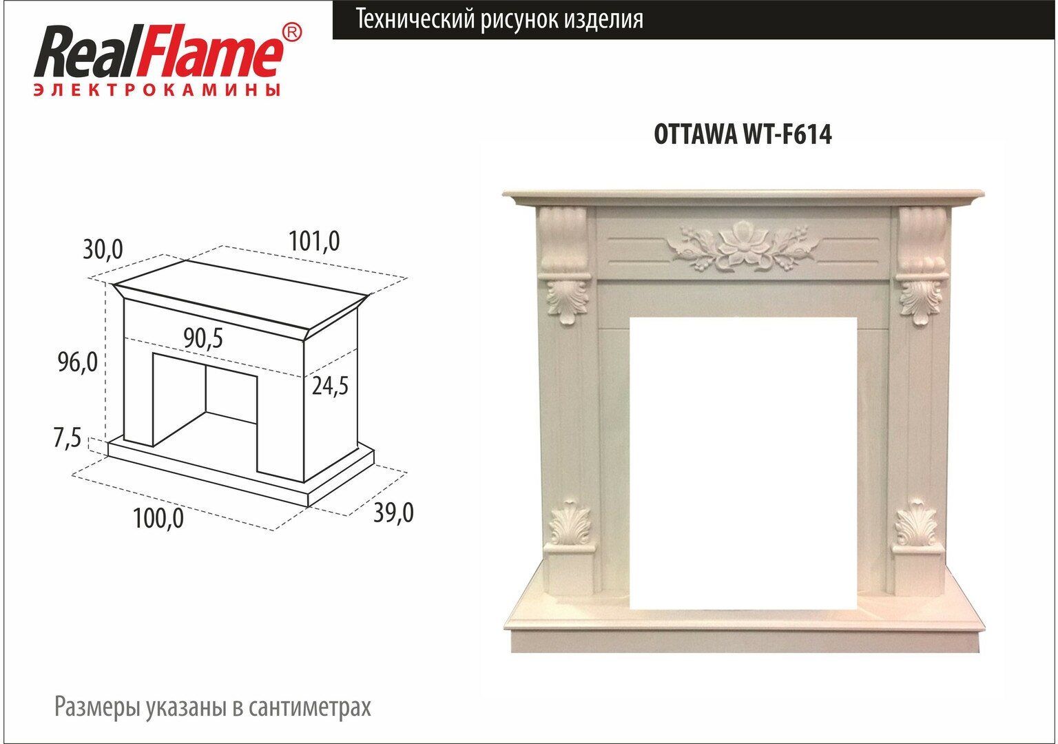 Электрокамин RealFlame Ottawa WT МДФ с очагом Fobos, звуковая имитация, пульт ДУ, обогрев