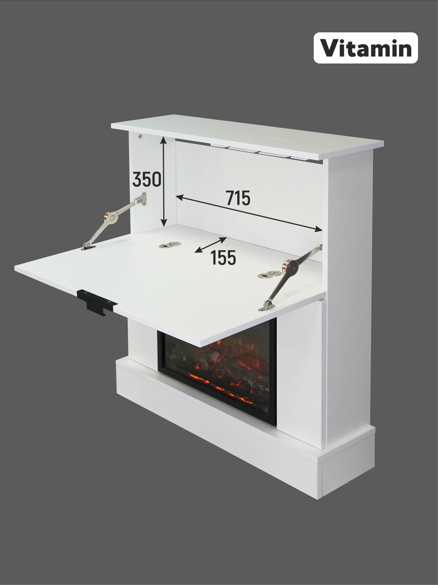 Камин электрический VITAMIN с белым порталом, мини-баром и хранением для бутылок. Цвет "Белый" в комплекте с постером интересное: