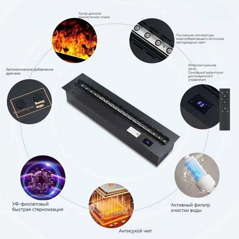Электрический камин с цветным пламенем,800mm,120w,24,17,17,11, Электрокамин,0.8, Черный, Черный,1v1720735132 интересное: