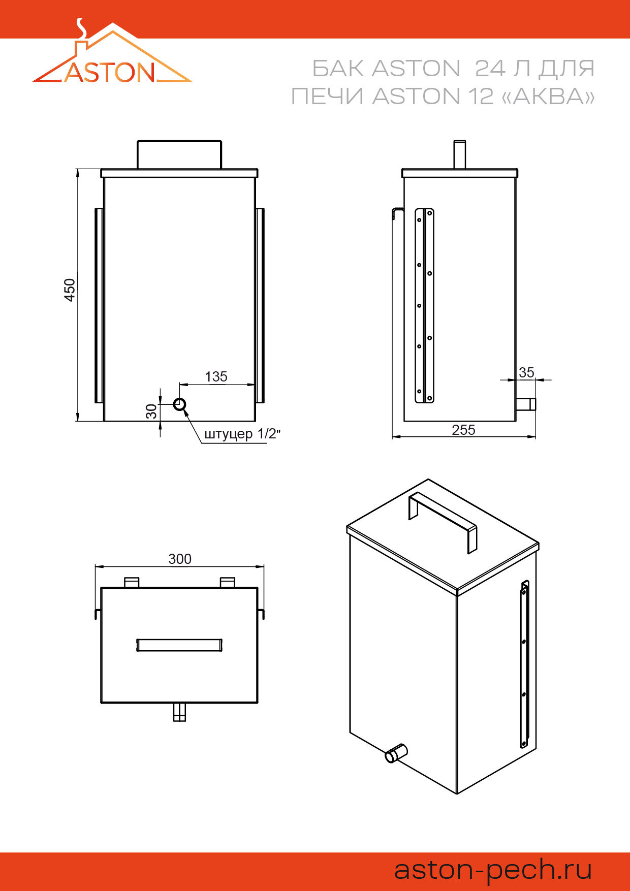Печь для бани ASTON 20 "аква" диаметр дымохода: 115 мм, закрытая каменка