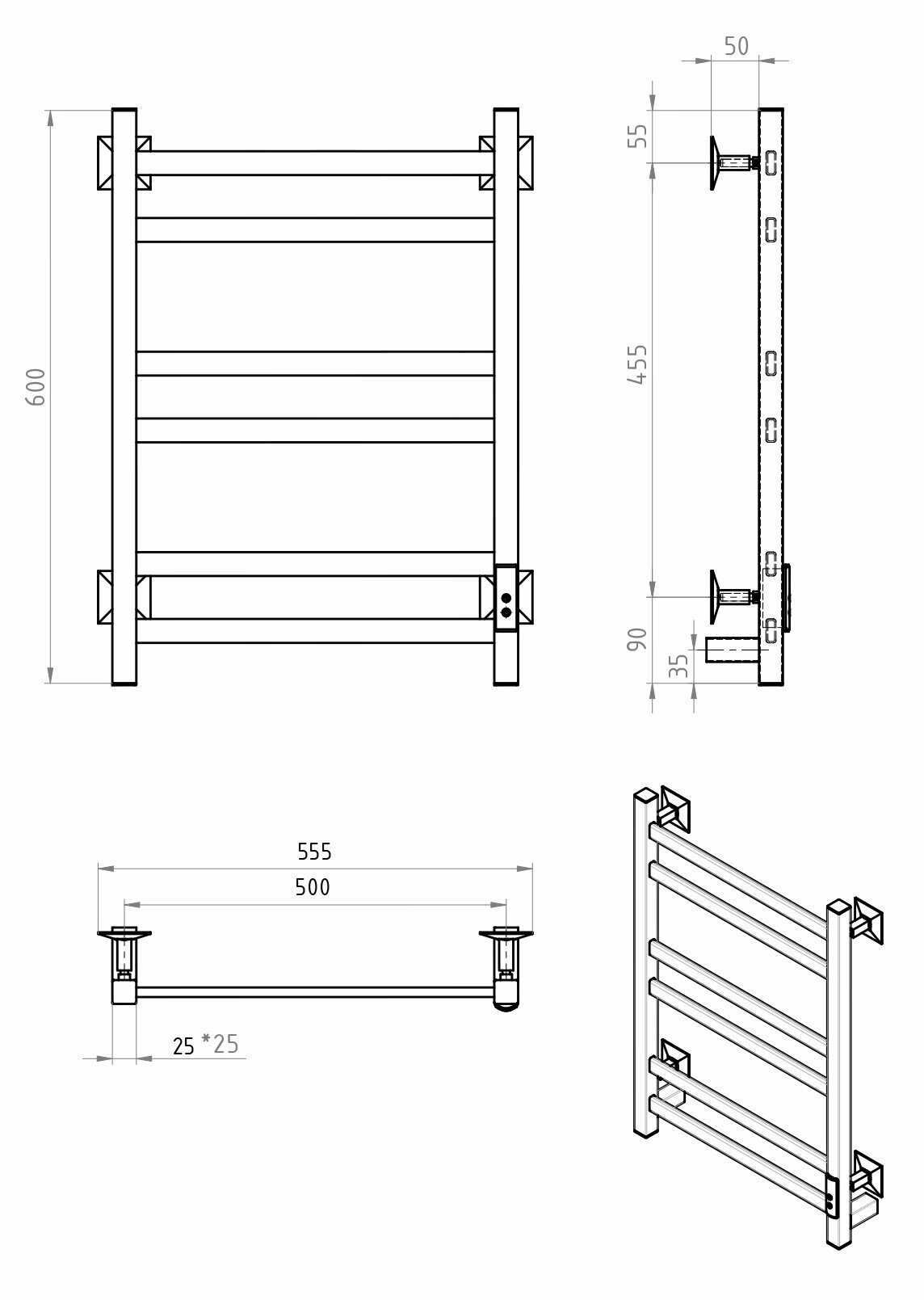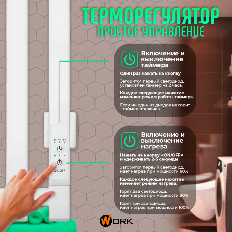Полотенцесушитель электрический в ванную WORK 60х50 белый 6 перекладин интересное:
