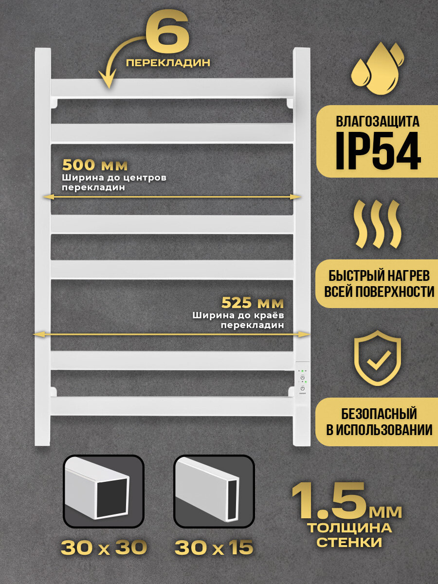 Купить Полотенцесушитель электрический в ванную WORK 60х50 белый 6 перекладин