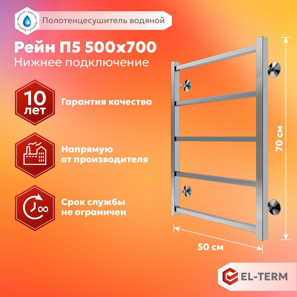 Купить Полотенцесушитель водяной EL-TERM (Эл-Терм) рейн 500х700 мм, нижнее подключение, нержавеющая сталь, гарантия 10 ЛЕТ/ водяной полотенцесушитель