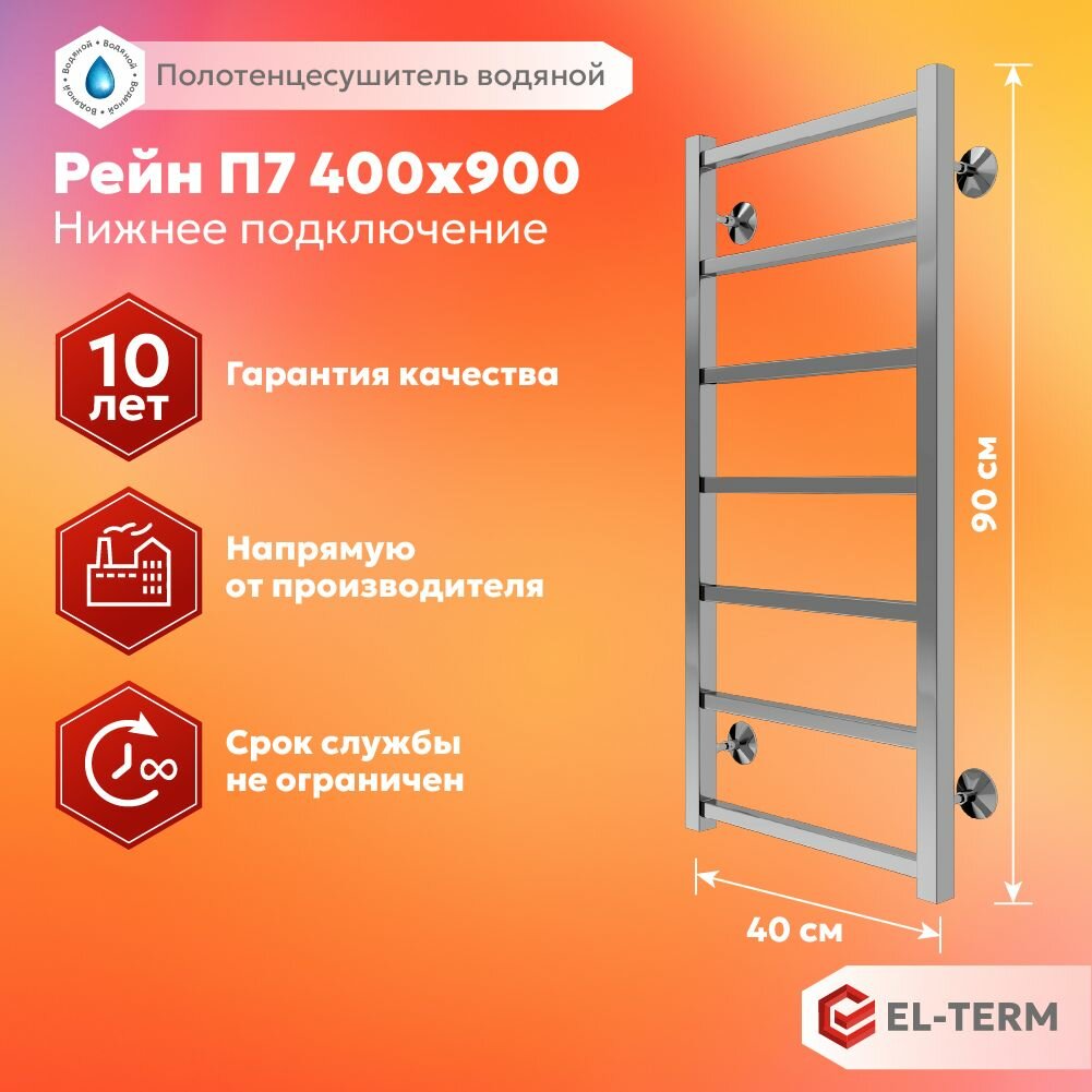 Купить Полотенцесушитель водяной EL-TERM (Эл-Терм) рейн 400х900 мм, нижнее подключение, нержавеющая сталь, гарантия 10 ЛЕТ/ водяной полотенцесушитель