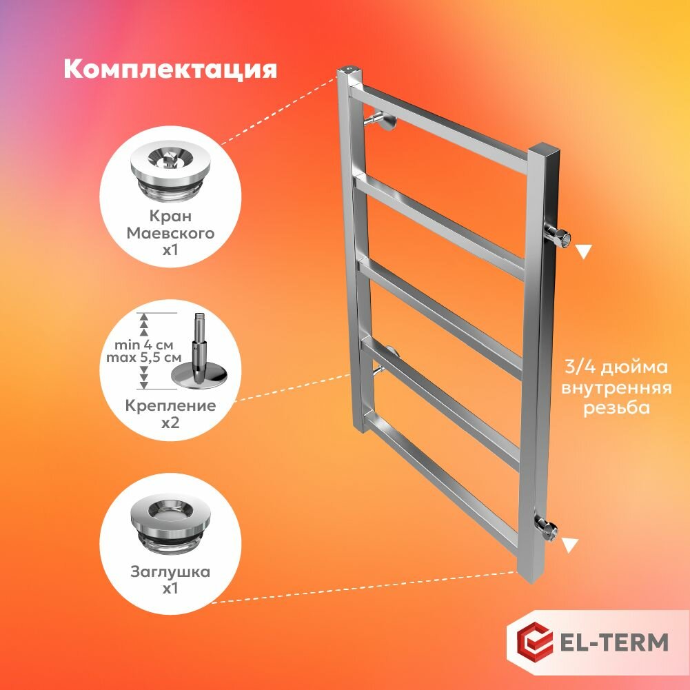 Полотенцесушитель водяной EL-TERM (Эл-Терм) рейн 500х700 мм, нижнее подключение, нержавеющая сталь, гарантия 10 ЛЕТ/ водяной полотенцесушитель