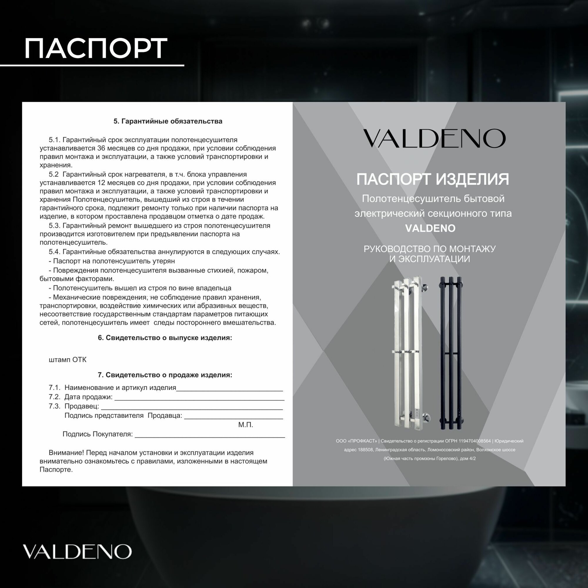 Полотенцесушитель электрический вертикальный ALTO 1200 стальной, скрытый монтаж, черный