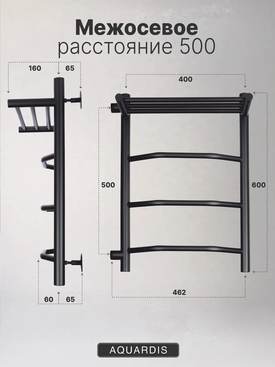 СохранитьПолотенцесушитель водяной черный с полкой 400х600 боковое левое подключение Межсоевое 500 интересное:
