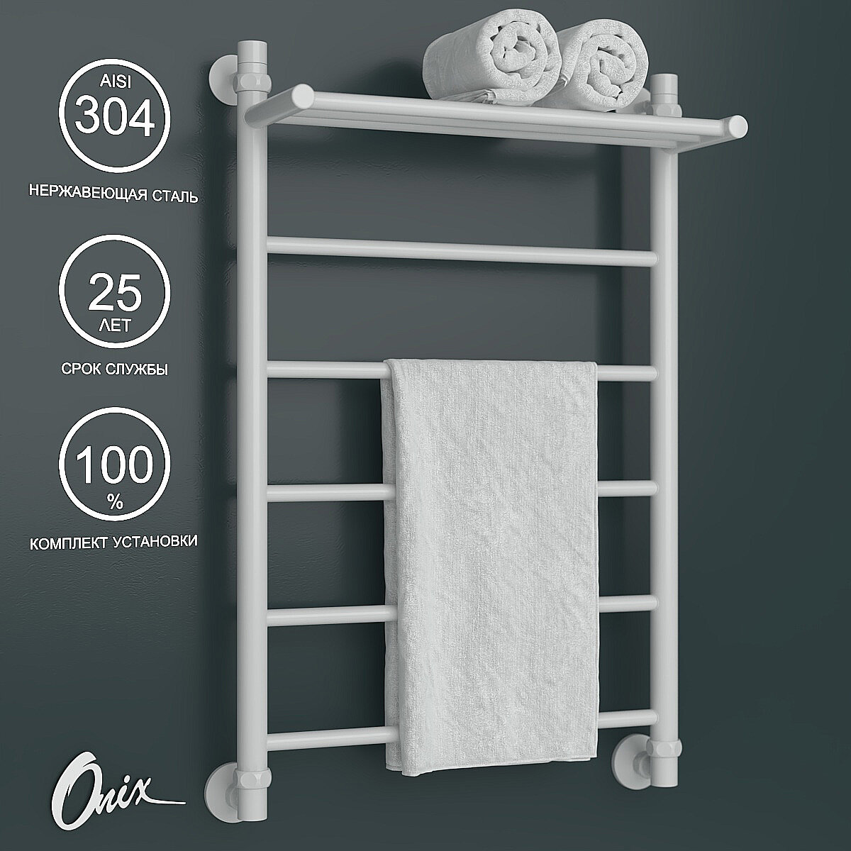 Купить Полотенцесушитель Водяной Onix, модель Classic Plus White 500x800 Лесенка с нижним подключением, Белый матовый, полный комплект