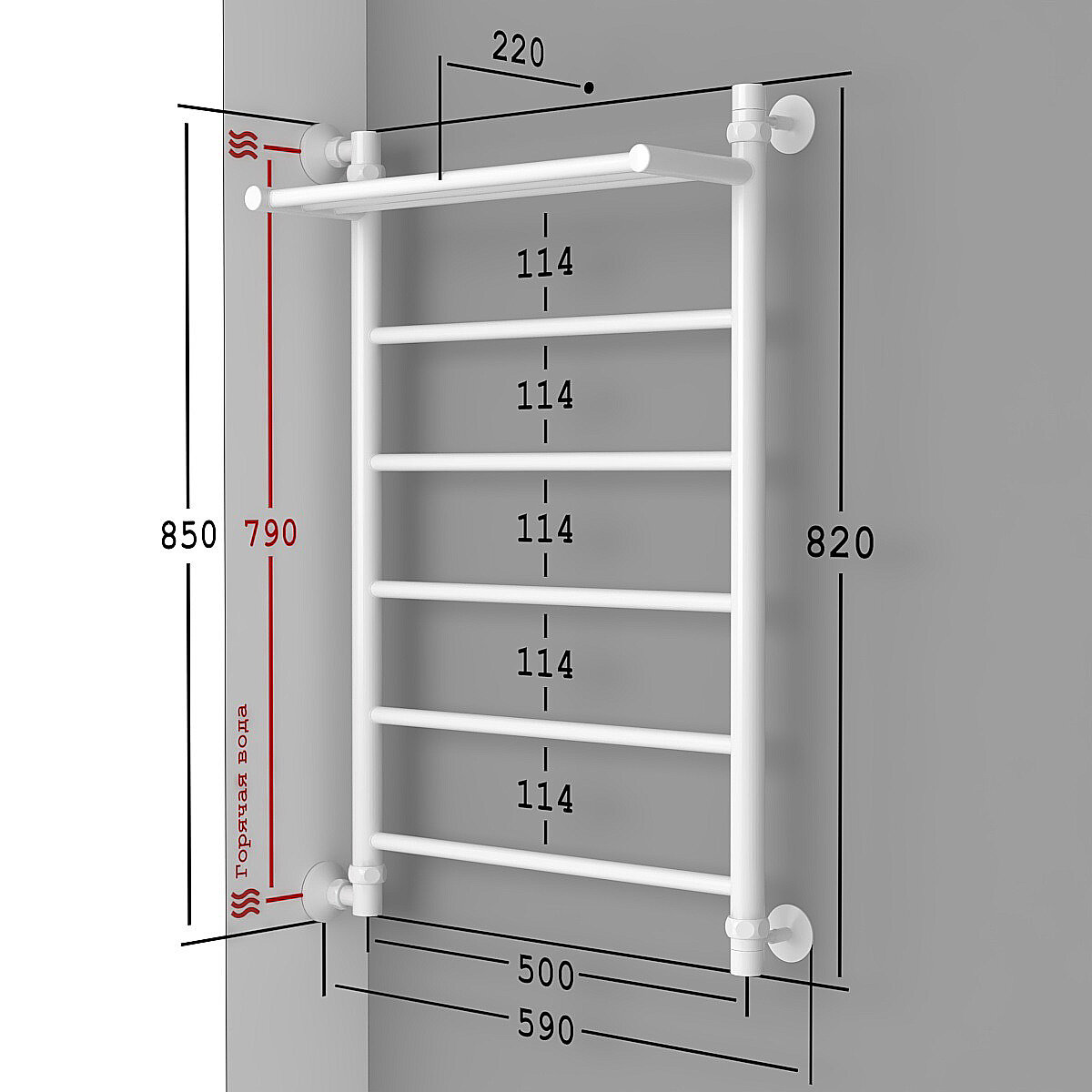 Полотенцесушитель Водяной Onix, модель Classic Plus White 500x800 Лесенка с нижним подключением, Белый матовый, полный комплект