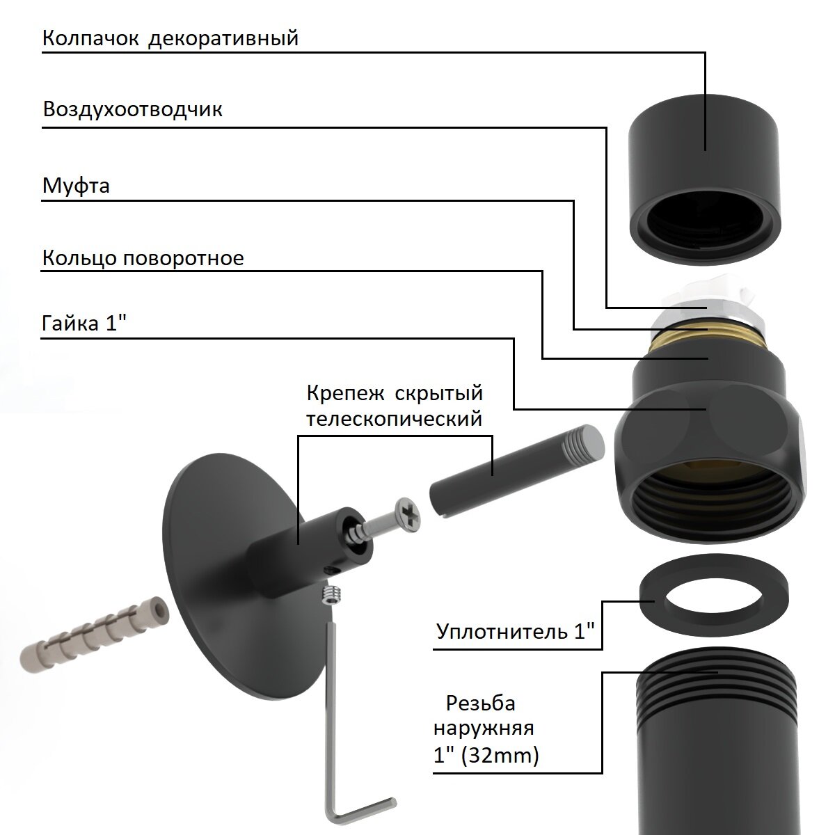 Полотенцесушитель Водяной Onix, модель Classic Plus Black 300x1000 Лесенка с нижним подключением, черный матовый, полный комплект