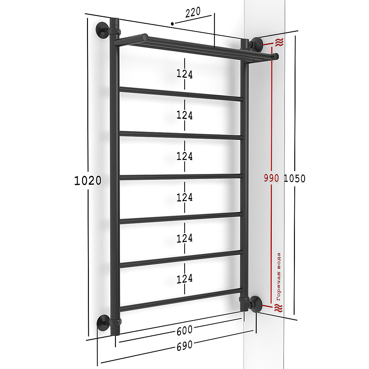 СохранитьПолотенцесушитель Водяной Onix, модель Classic Plus Black Right 600x1000, Лесенка с боковым подключением справа, черный матовый, полный комплект интересное: