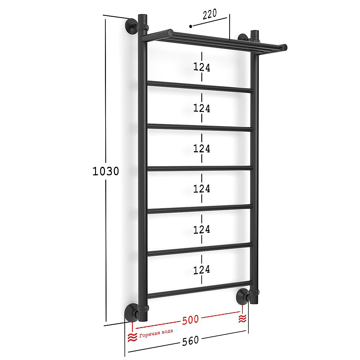 Полотенцесушитель Водяной Onix, модель Classic Plus Black Left 500x1000, Лесенка с боковым подключением слева, черный матовый, полный комплект