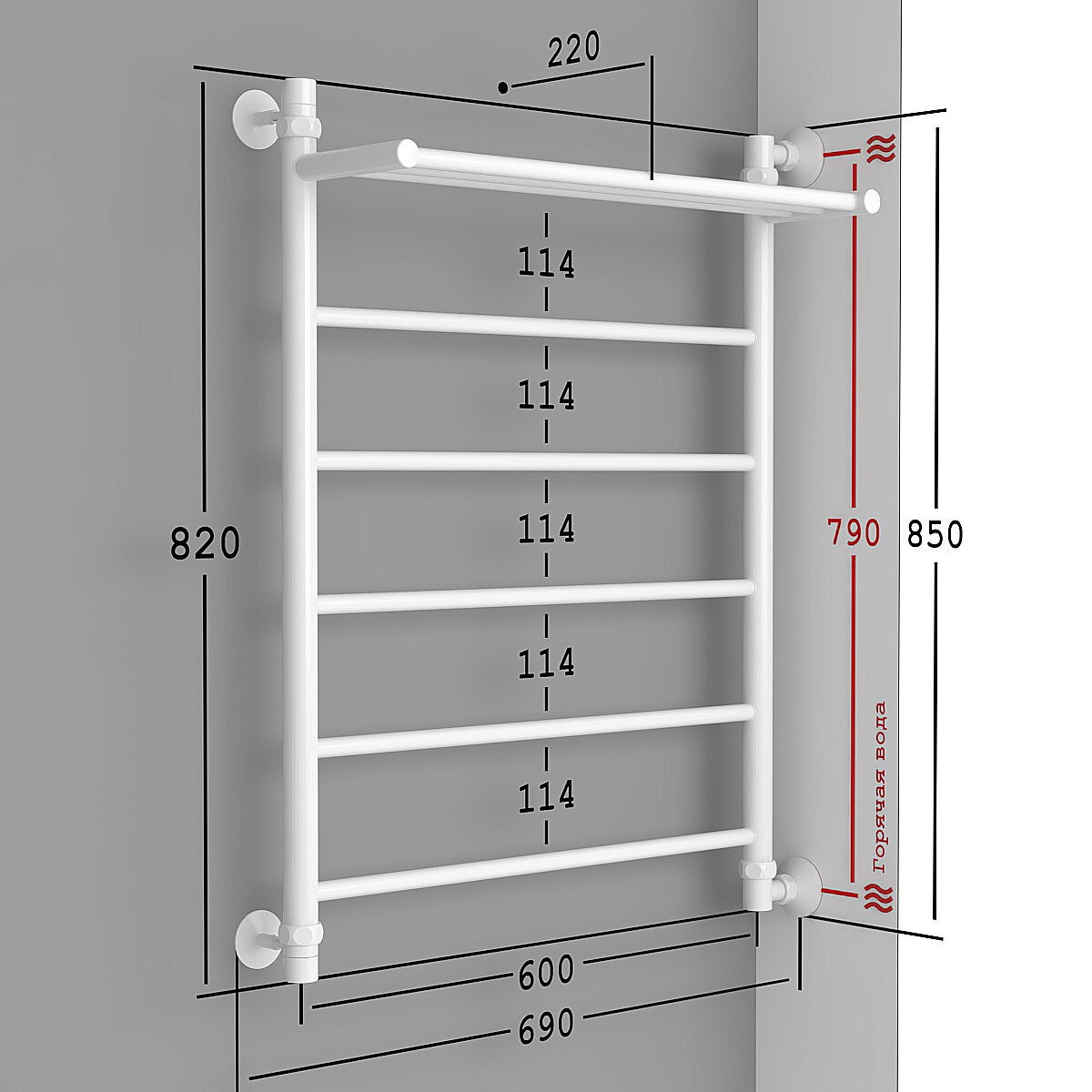 Полотенцесушитель Водяной Onix, модель Classic Plus с нижним подключением 600x800, полный комплект, нижнее подключение