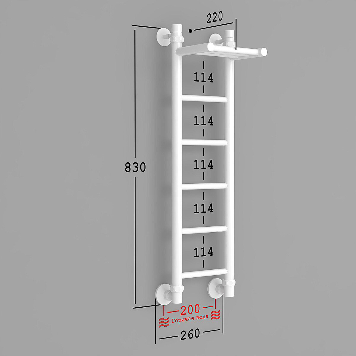 Полотенцесушитель Водяной Onix, модель Classic Plus White Right 200x800, Лесенка с боковым подключением справа, Белый матовый, полный комплект