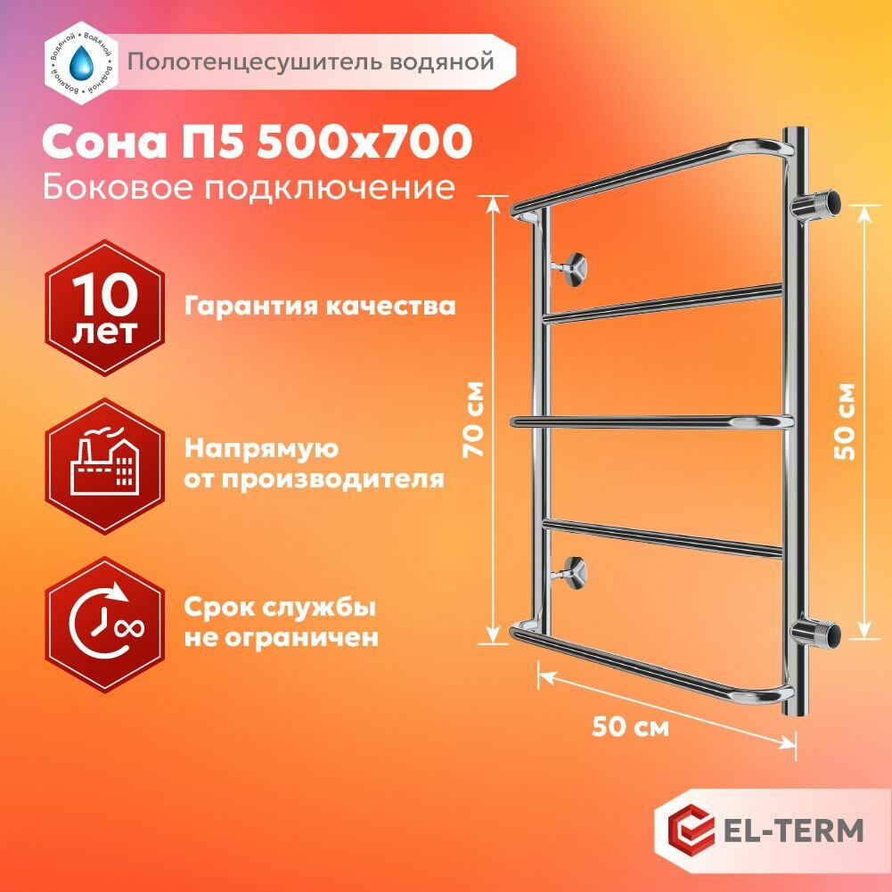 Полотенцесушитель водяной EL-TERM (Эл-Терм) СОНА 500х700 боковое подключение 500 мм, нержавеющая сталь интересное: