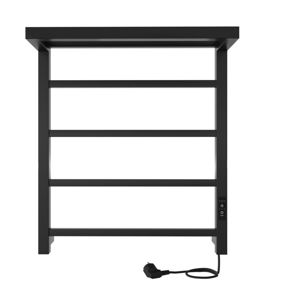 Полотенцесушитель электрический 600х500 INDIGO Forma (LEF60-50BRRt) универсальное подключение. с полкой, черный интересное: