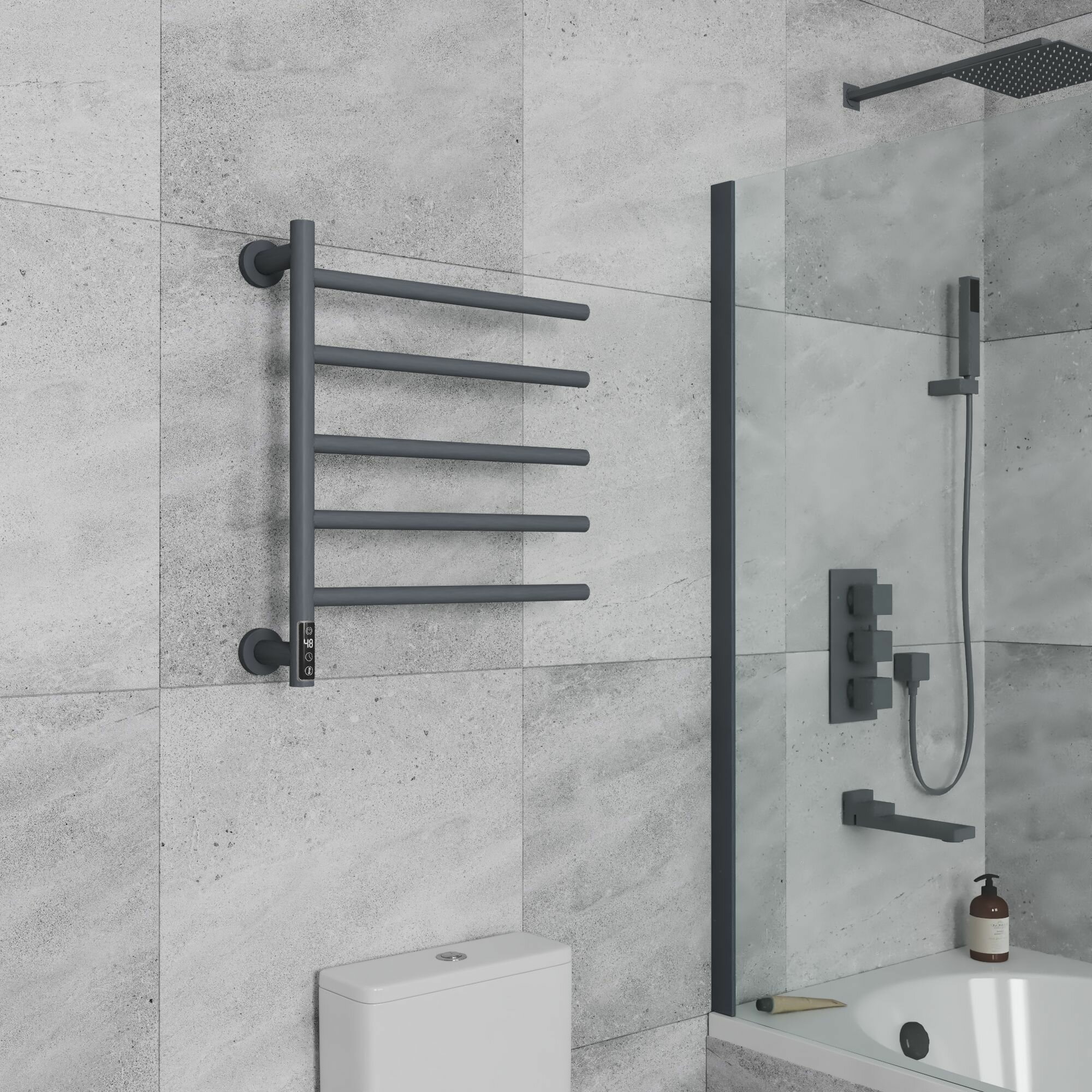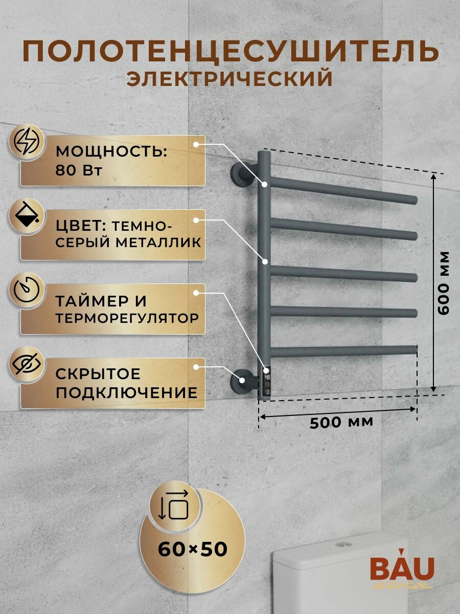 Полотенцесушитель дизайнерский электрический BAU Nimb Elegant Gun Grey 60х50, подключение нижнее, темно-серый металлик интересное: