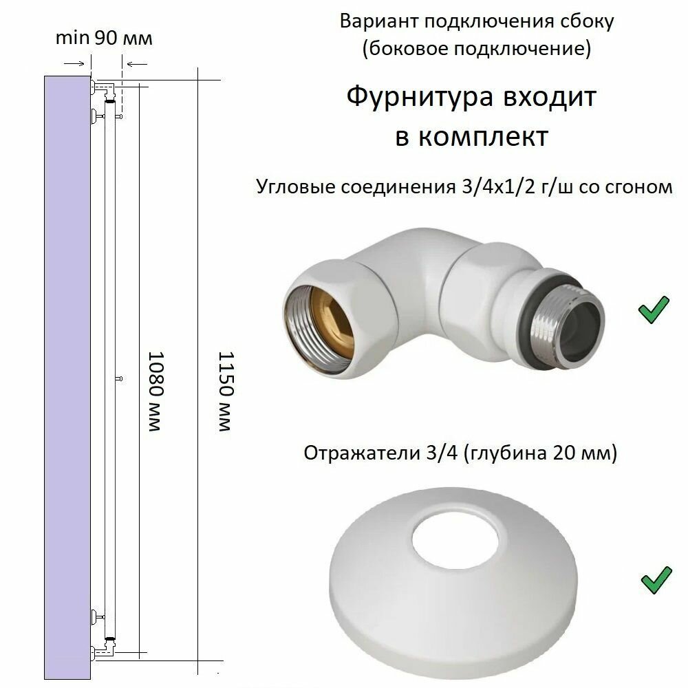 Купить Полотенцесушитель Водяной Вертикаль с 4 вешалками 70 мм 1000 мм /цвет белый матовый / полный комплект /гарантия 5 лет
