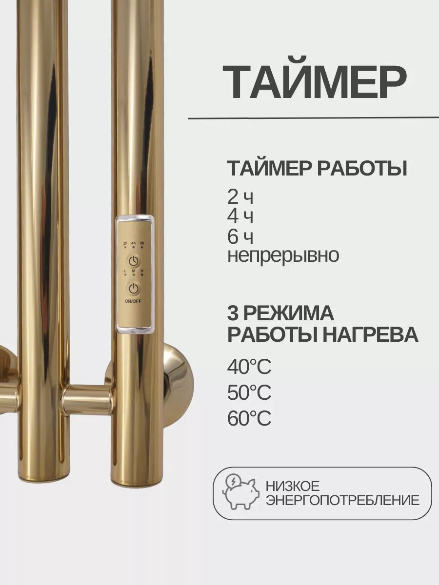 Электрический полотенцесушитель Маргроид Inaro 3 120x12 золото глянец. НЕРЖАВЕЮЩАЯ СТАЛЬ, с кабелем с вилкой 90 см интересное: