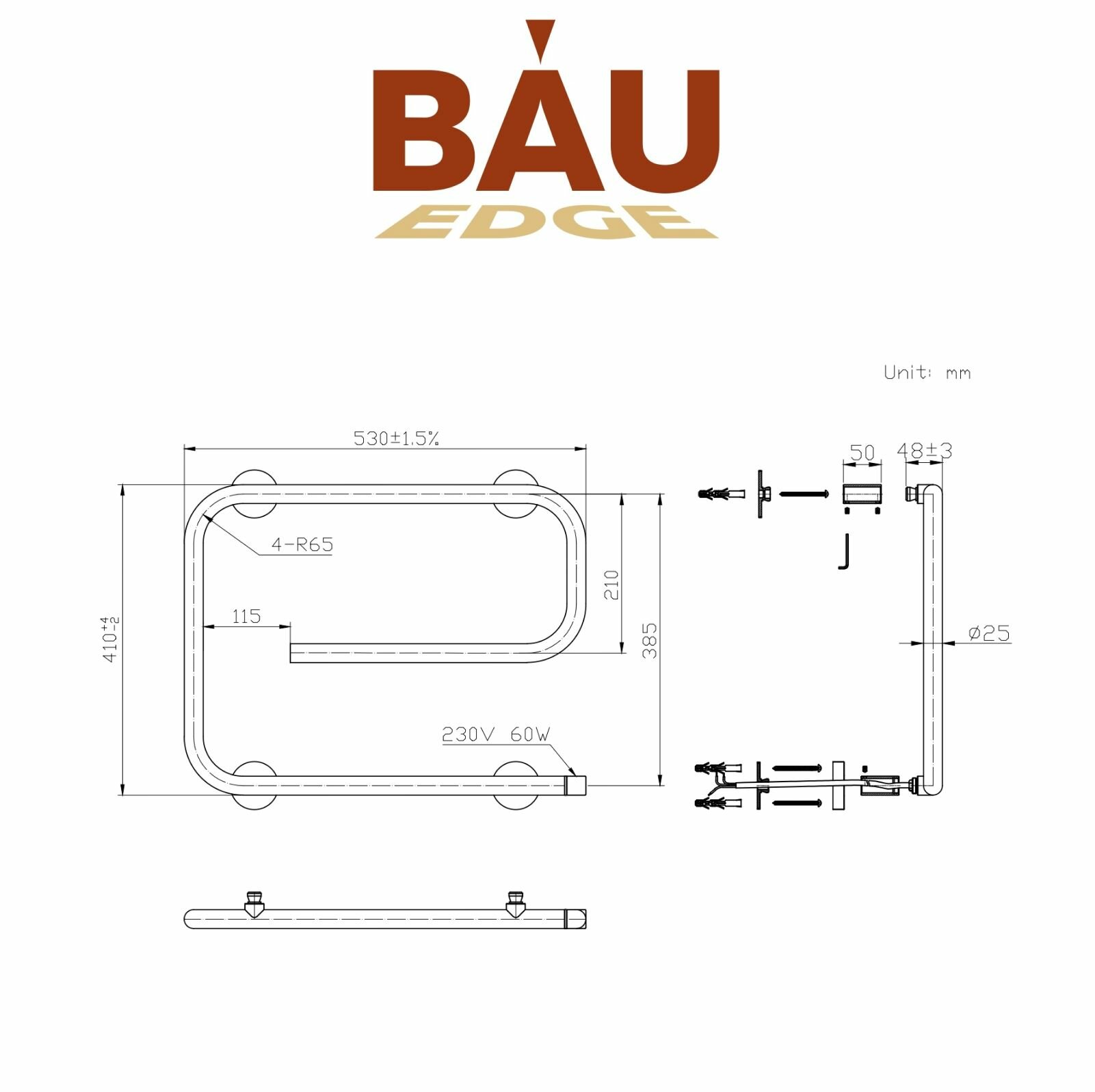 Полотенцесушитель электрический BAU E Black 41х53, черный матовый