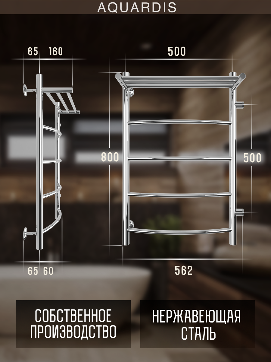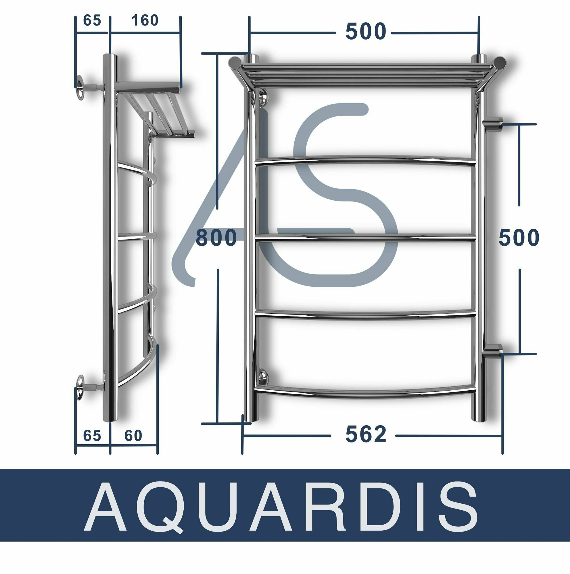 Полотенцесушитель водяной Aquardis с полочкой с левым боковым подключением