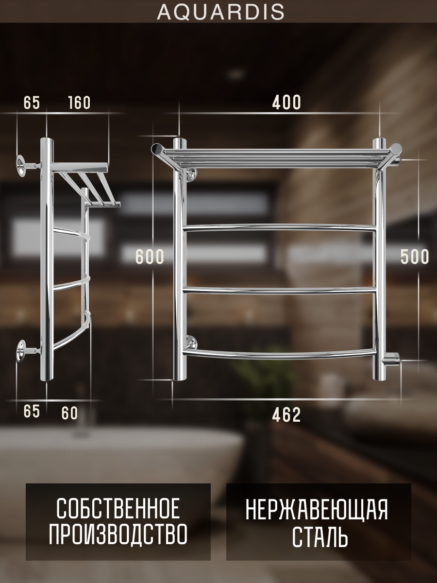 Полотенцесушитель водяной Aquardis с полочкой с левым боковым подключением