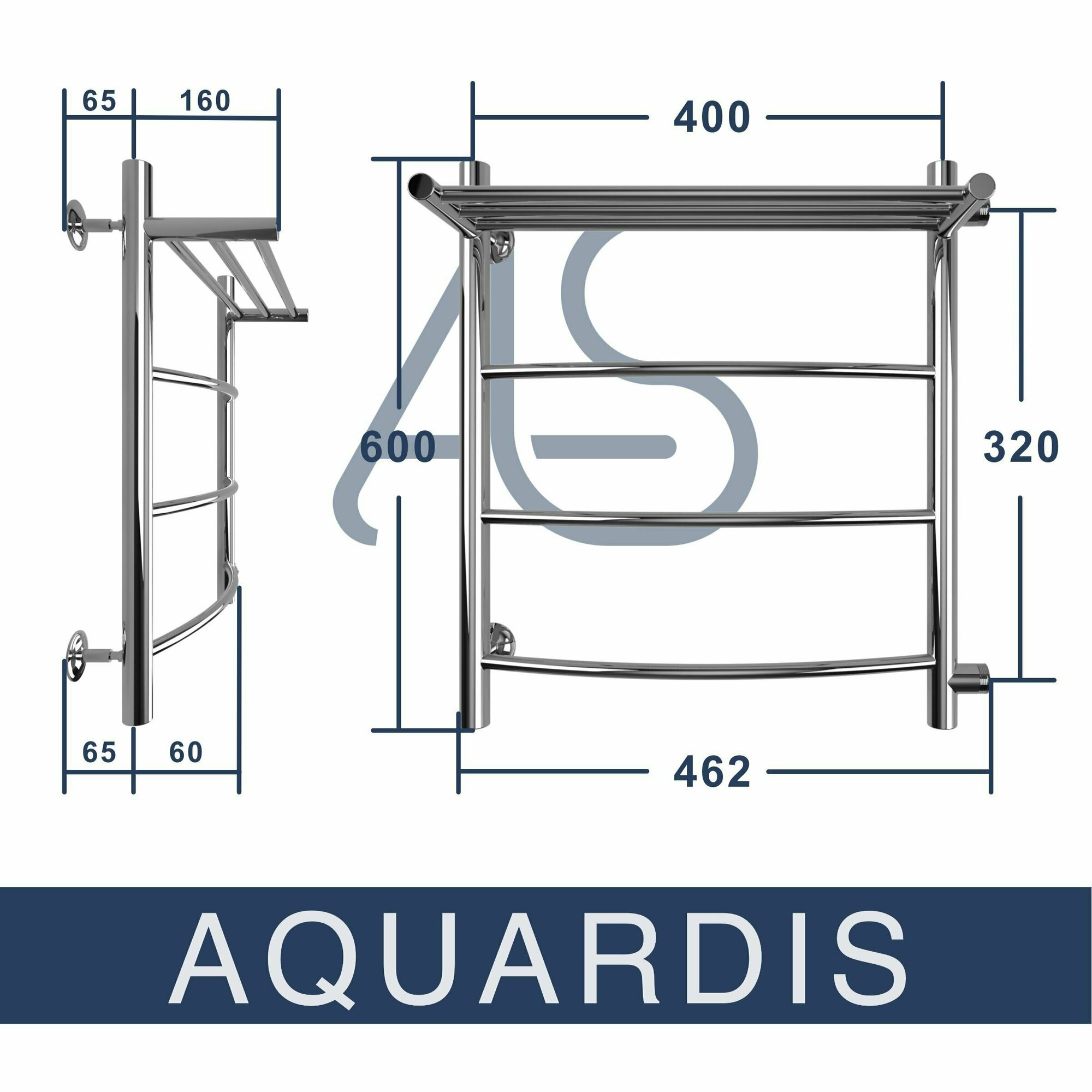 Полотенцесушитель водяной Aquardis с полочкой с левым боковым подключением