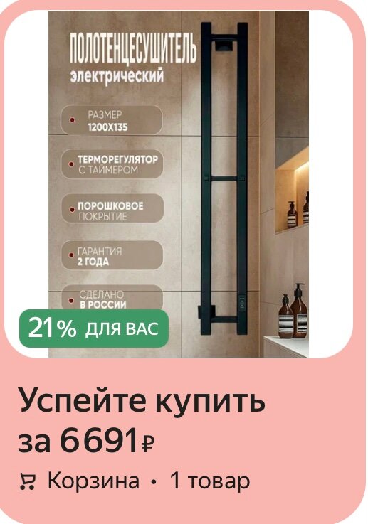 СохранитьИтак, мы решили сравнить, где же дешевле купить Полотенцесушитель УЗКИЙ ЧЕРНЫЙ Eriknar электрический 1200 мм / 135 мм, для этого мы взяли Яндекс Маркет и 2 других маркетплейса е-Каталог и Авито, результаты сравнения цен на Полотенцесушитель УЗКИЙ ЧЕРНЫЙ Eriknar электрический 1200 мм / 135 мм ниже.