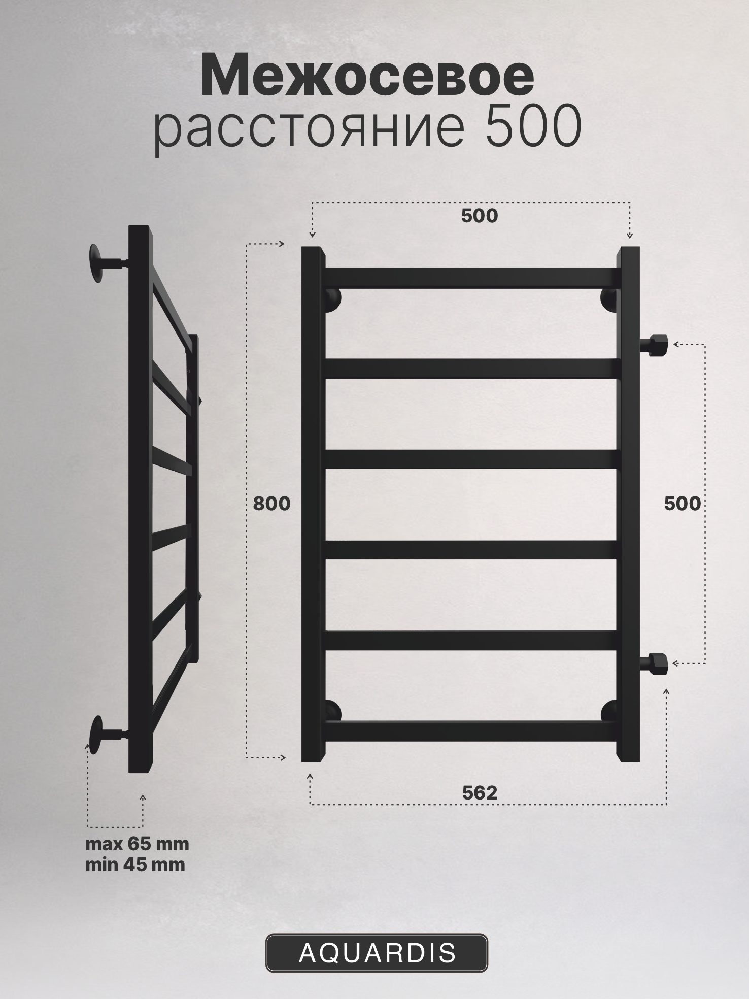 Полотенцесушитель AQUARDIS, водяной, квадратный, 50 см х 80 см, черный матовый интересное: