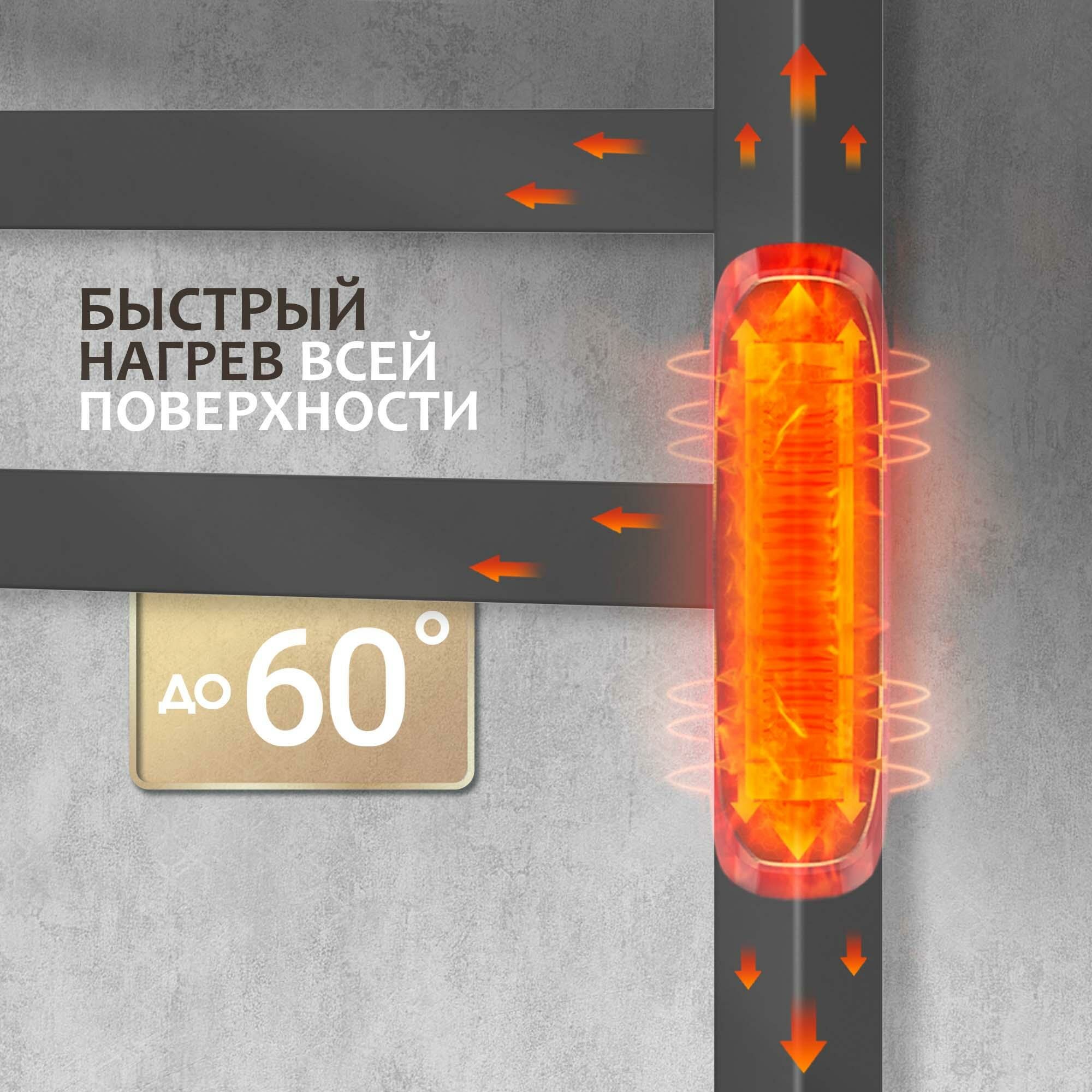 Полотенцесушитель Электрический Тругор Пэк сп 5 П 60х50 черный ВГП