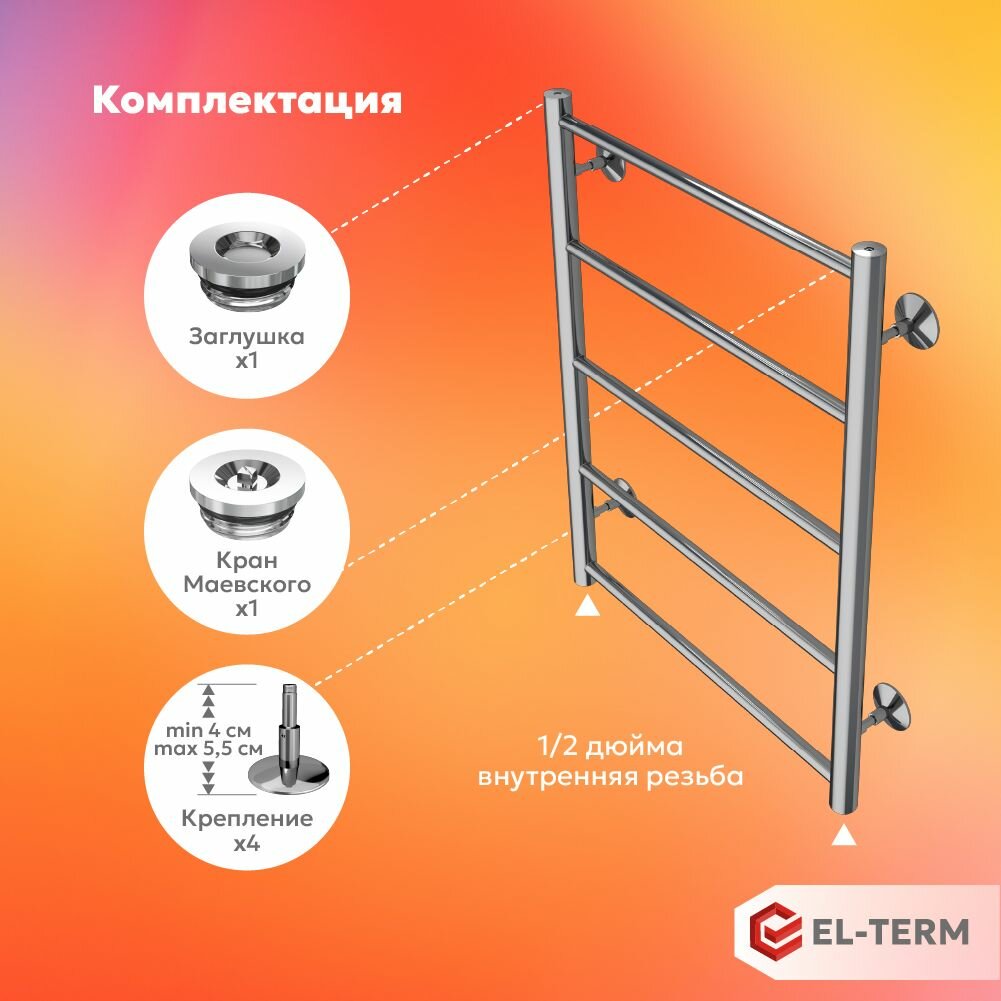 Полотенцесушитель водяной EL-TERM (Эл-Терм) лион 500х700 боковое подключение 500 мм, нержавеющая сталь, гарантия 10 ЛЕТ/ водяной полотенцесушитель