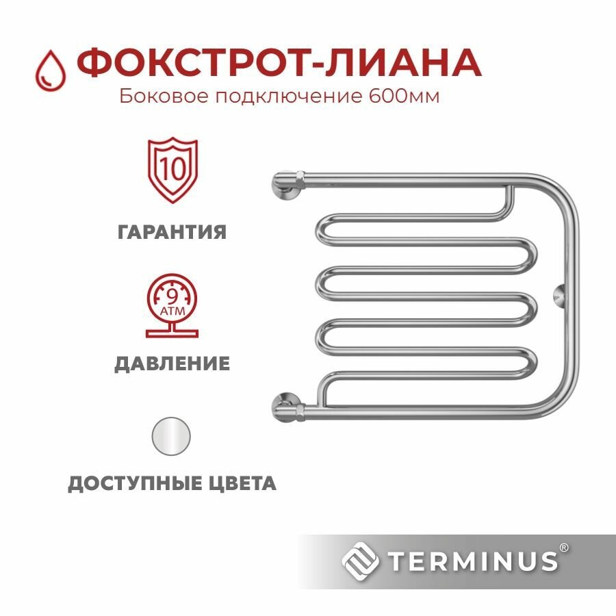 Купить Полотенцесушитель водяной TERMINUS (Терминус) Фокстрот-лиана 600х500 мм, боковое подключение 600 мм, гарантия 10 ЛЕТ