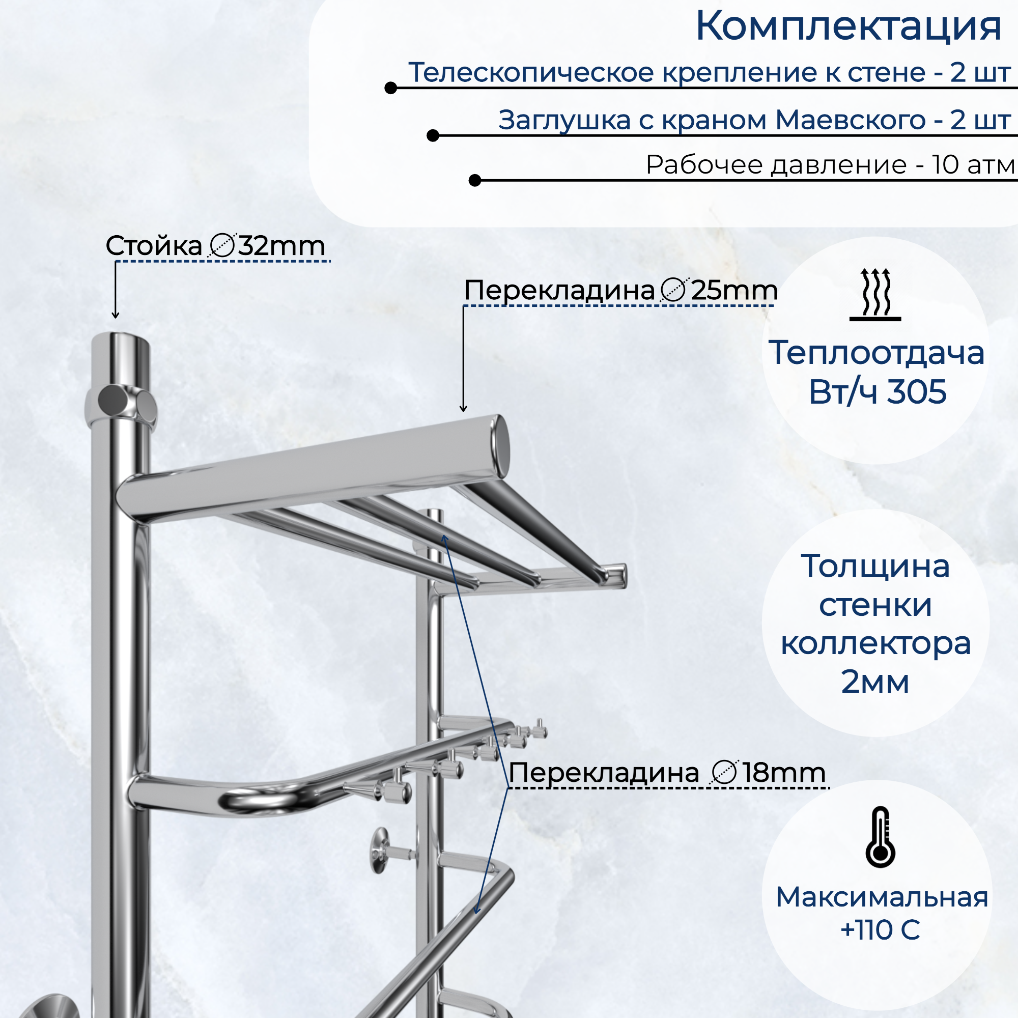 СохранитьВодяной полотенцесушитель "Юрма" L1сп 80х50 см, нержавеющая сталь с полкой интересное: