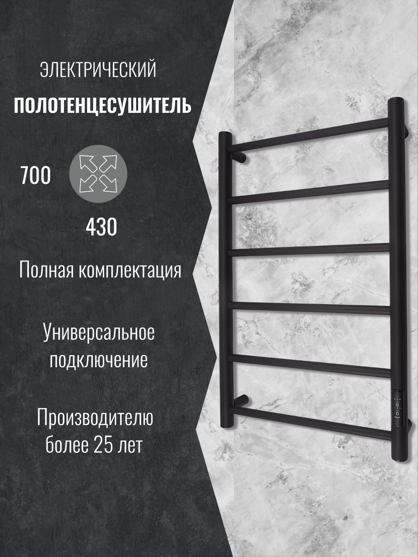 Полотенцесушитель электрический Маргроид 700х400 мм Вид 10 черный матовый 6 вставок равномерно интересное: