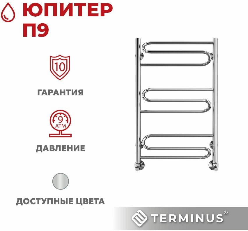 Полотенцесушитель Terminus (Терминус) Юпитер П9 500х800мм, нижнее подключение, нержавеющая сталь, гарантия 10 лет интересное: