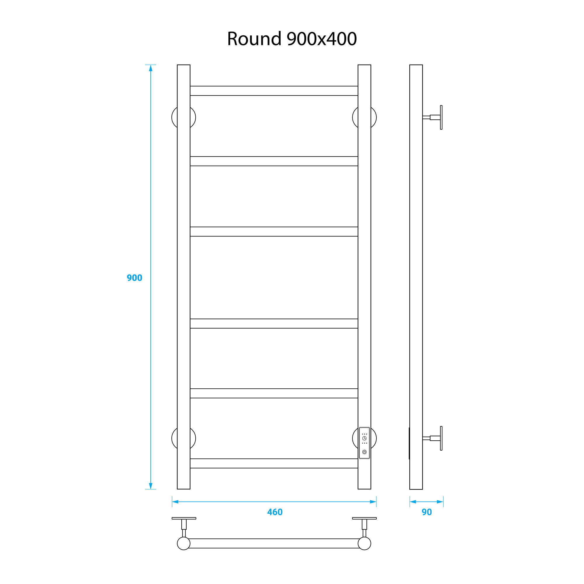Полотенцесушитель электрический Energy ROUND 900x400 черный матовый, с терморегулятором и таймером
