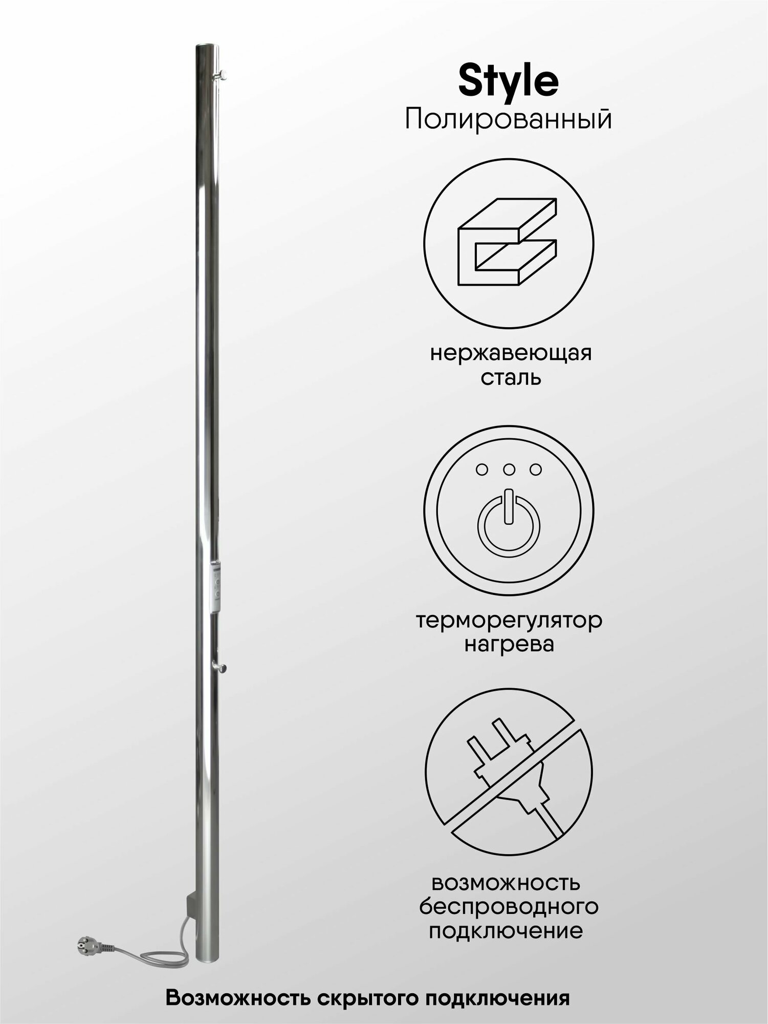 Полотенцесушитель электрический INDIGO Style 120/3 скрытый монтаж, универсальное подключение интересное: