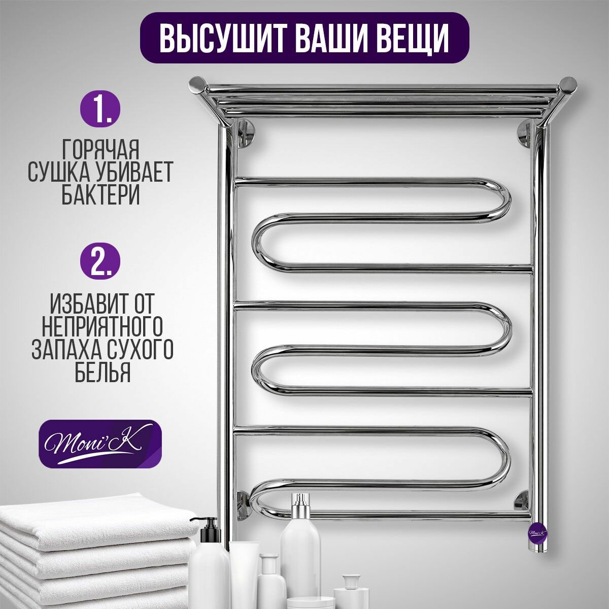 Полотенцесушитель электрический с терморегулятором Moni'k, 50х80 см, хром интересное: